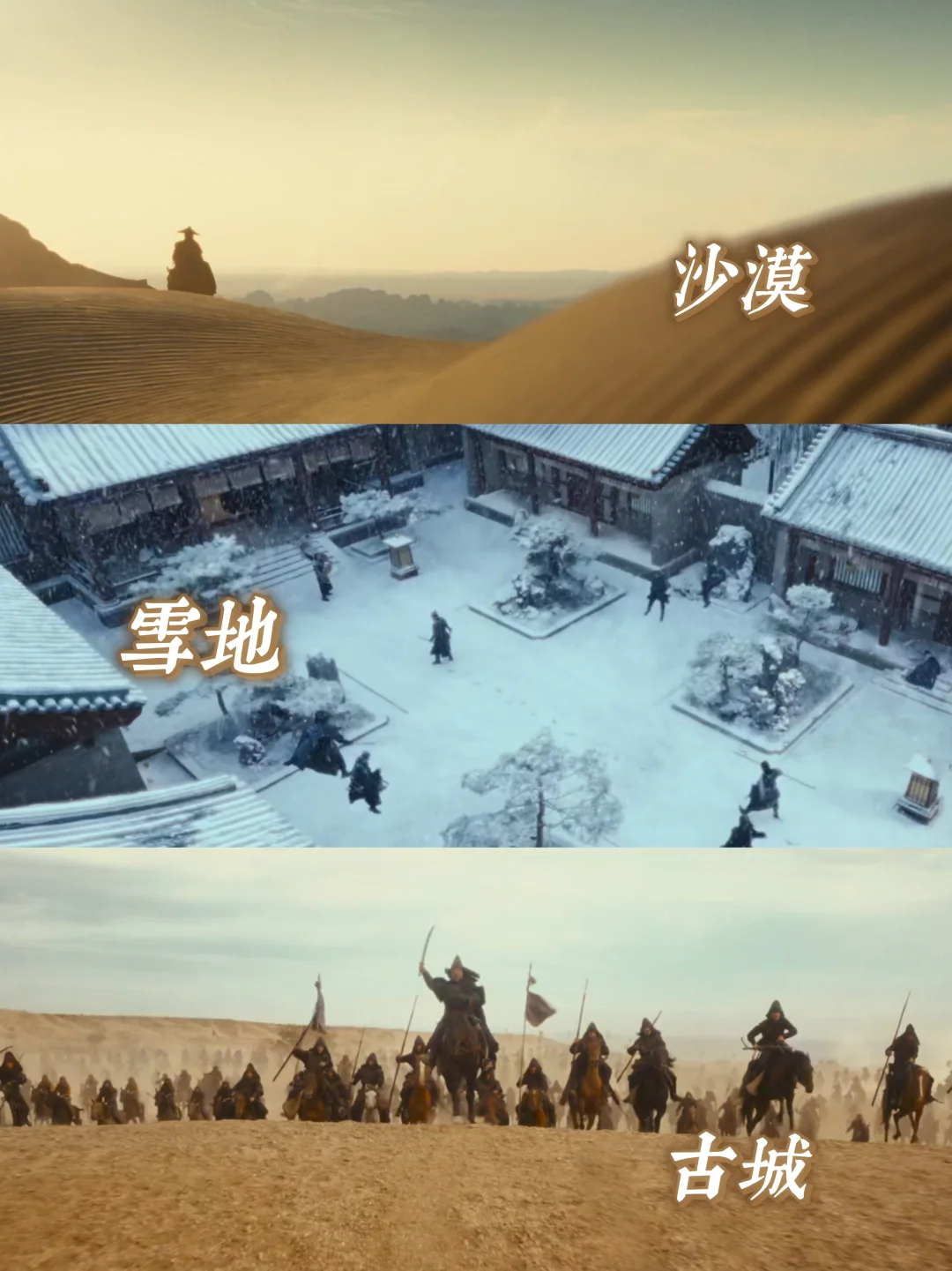 沙漠、雪地、古城🏜️写实庞大的场景不再突出个体的高光,而是苍生无言,侠为其声的震撼