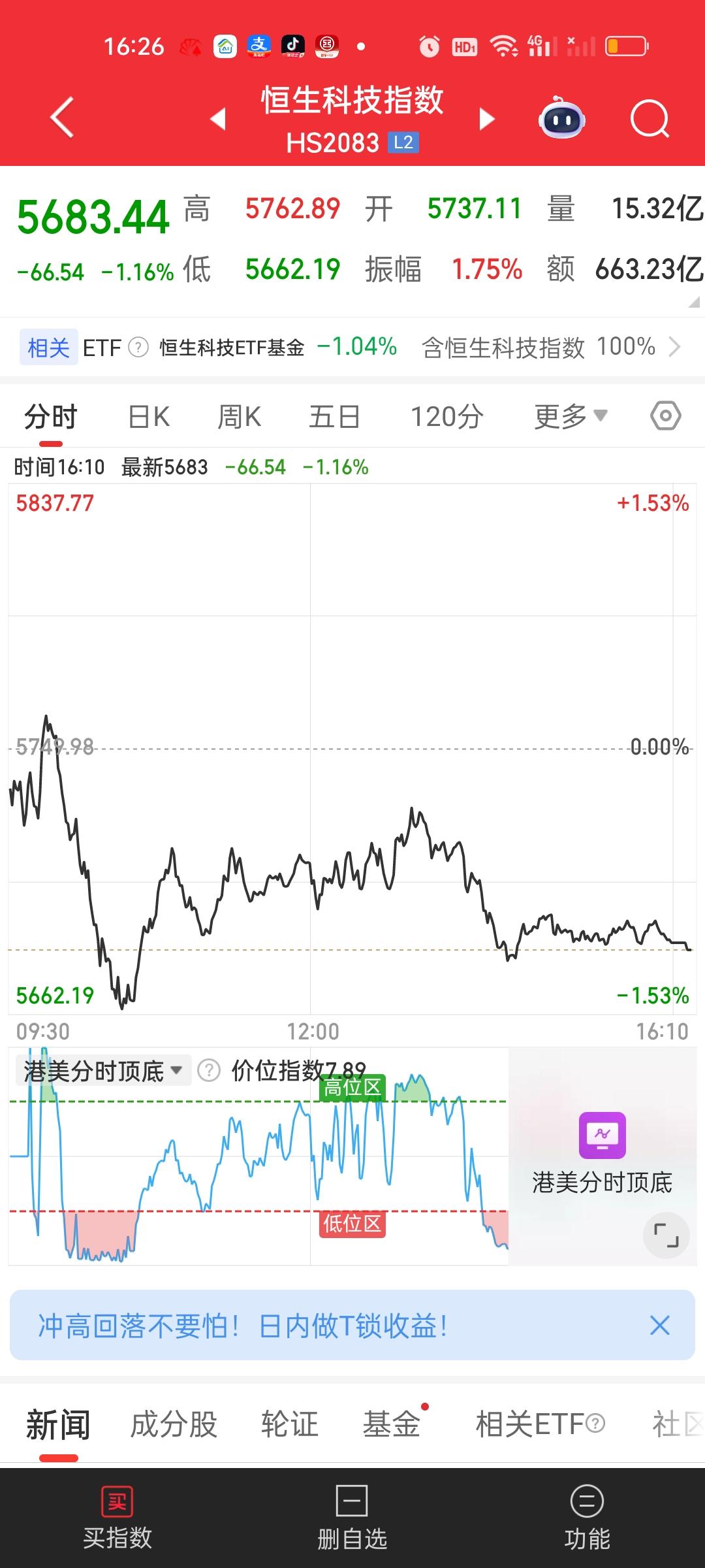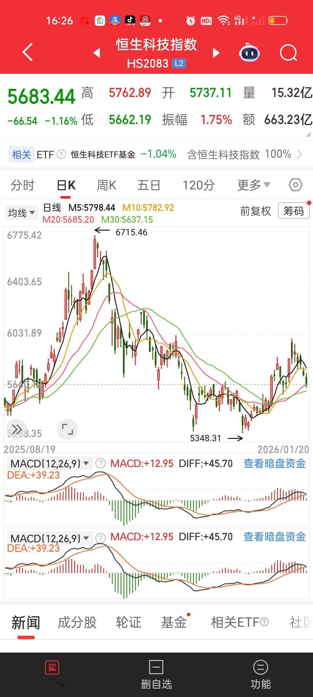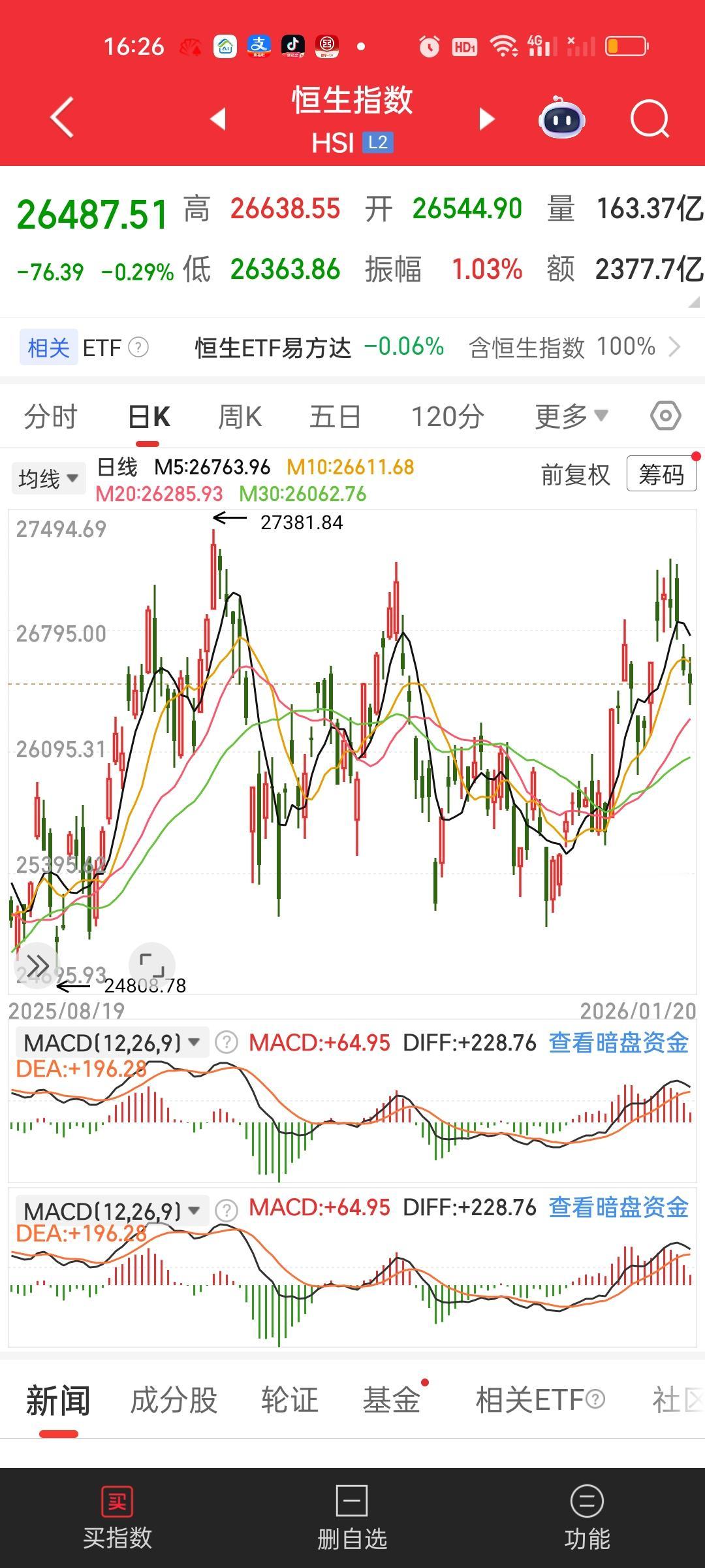 港股收盘了,可能要考虑到美股带来的压力,今天两大指数收盘都是跌的,因为美股昨天没有开盘,而今天期指都是暴跌的状态,道指暴跌近850点,美股晚上开盘暴跌700点以上是大概率事件。 恒指跌破了5日10日线,但还在20日30日线上,恒科今天已经跌破了5日10日20日线,只剩下30日线一道支撑。晚上美股的走势会给港股带来影响。