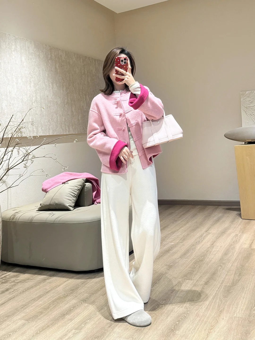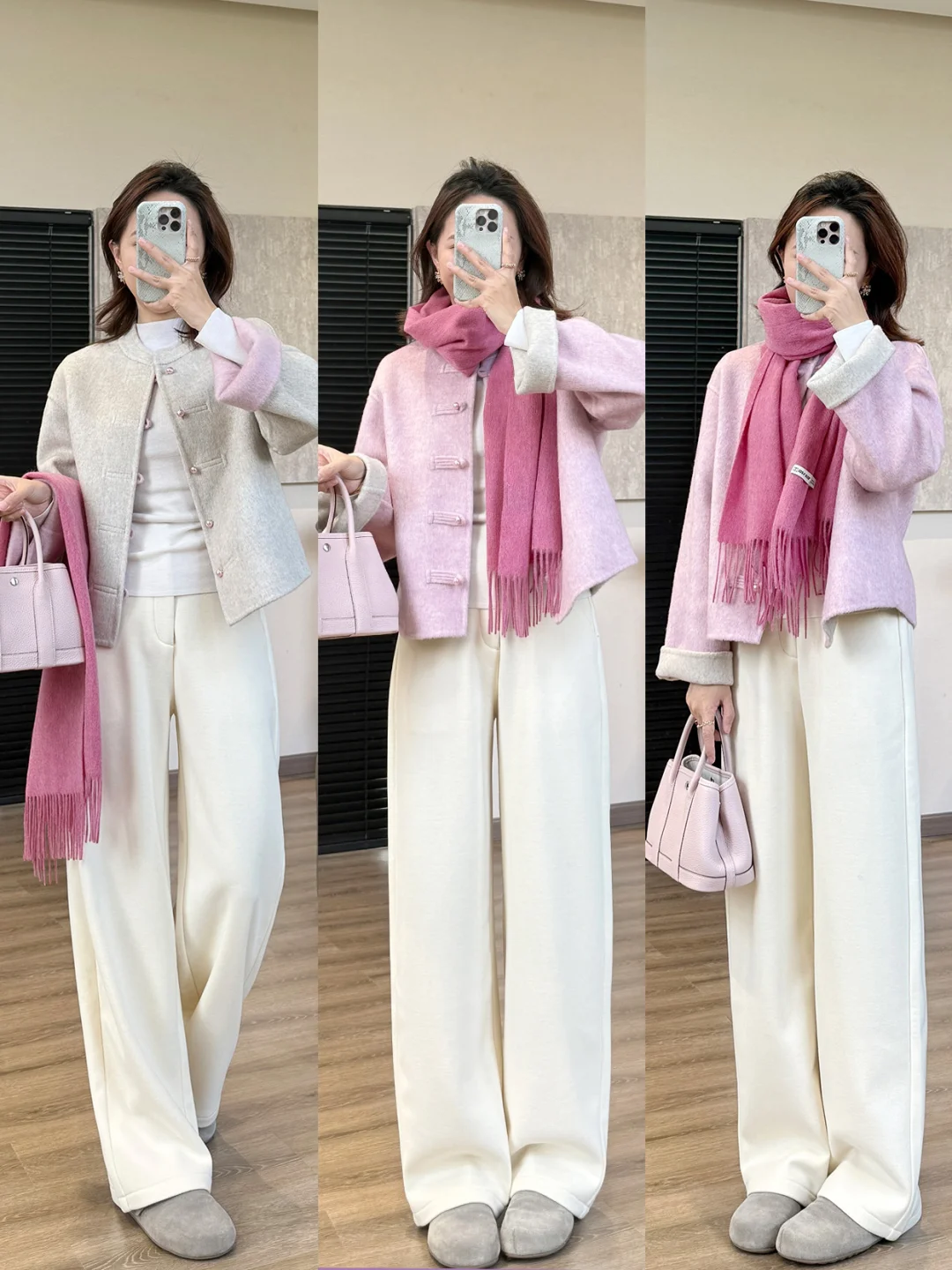 颜色是很温柔贵气的粉色~淡淡的,很温婉! 搭配半裙太适合年底见家长和小姐妹出去聚会 小个子穿这套都合适! 已经开始期待放假了! 158小个子穿搭 梨形身材穿搭 冬季穿搭 粉色系穿搭 新中式穿搭 外套搭配 温柔穿搭 浅春系穿搭 新年战袍