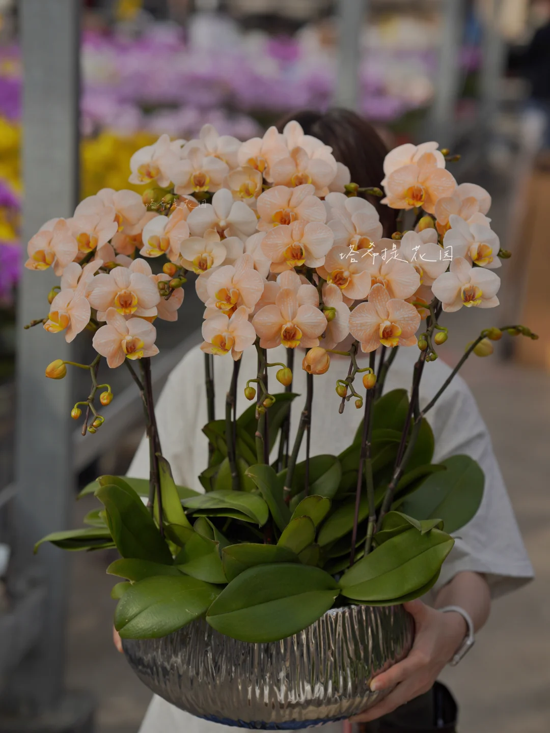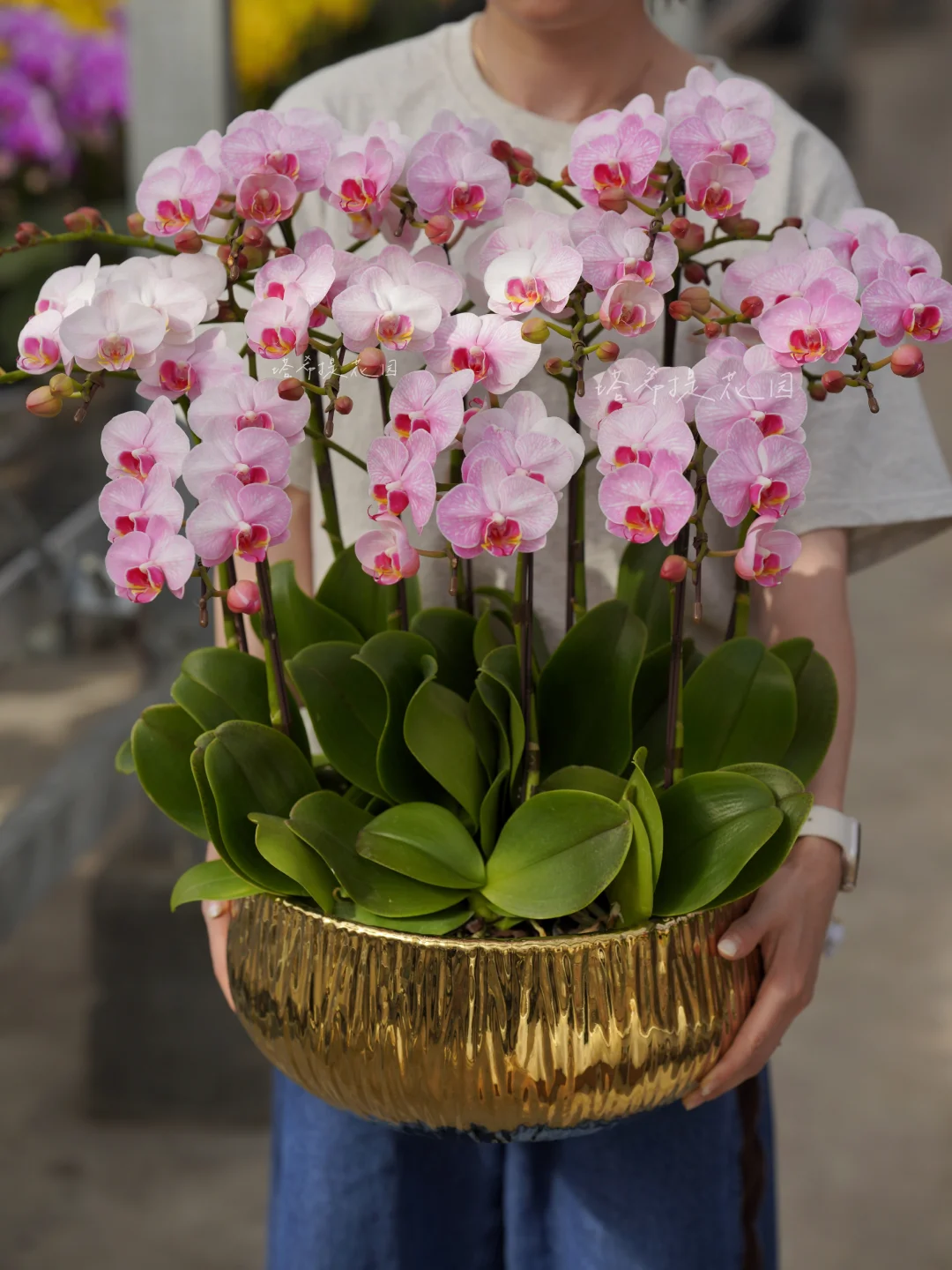 日本蝴蝶兰组盆系列,整体简单干净,有一种秩序美! . 蝴蝶兰养护小提示:开花后不建议阳光直射;温度保持在18℃~28℃之间为宜,高温会加速开花、低温会产生冻害;浇水建议使用直饮水或纯净水避免自来水杂质过多;每次浇水只浇水根部(叶片最下面,避免积水在叶心位置);土壤干透再浇透水,花盆或托盘不要积水。 .
