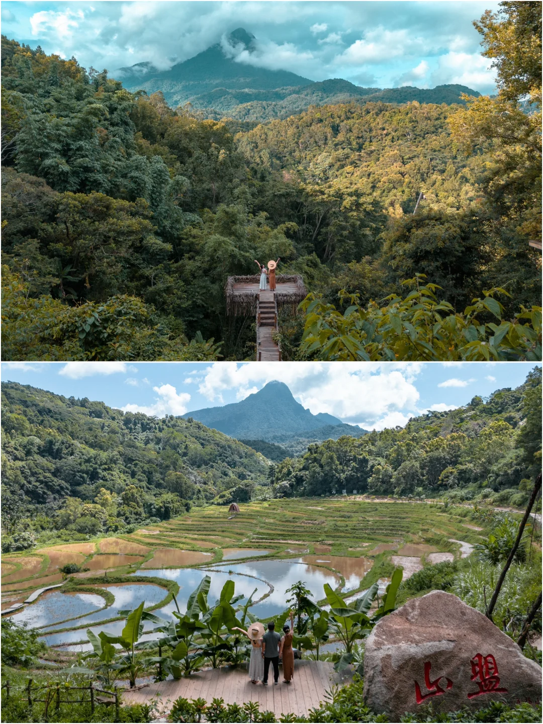 不必问路有多长,山有多高。 山不赴我,我自见山— 去听风穿过雨林 去触云雾环绕山巅 去走蜿蜒的栈道 去见深浅不一的绿 回头看时 轻舟已过万重山 - ⛰|五指山·方诺寨热带雨林景区 📷|拍照点位推荐: 观山台/情人小树屋/山顶吧台/苗妹湖/山间栈道 主页更多拍照机位👉📷