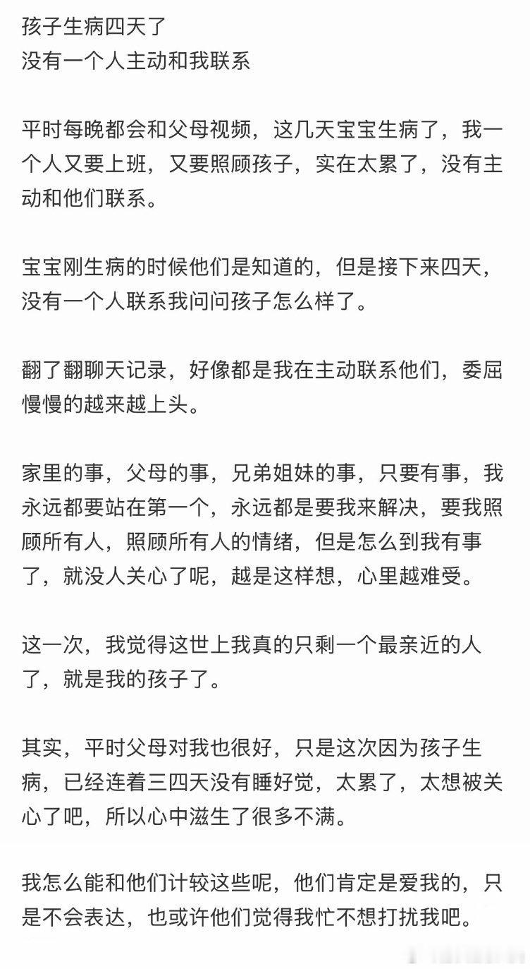 孩子生病已四天,无人主动联系。