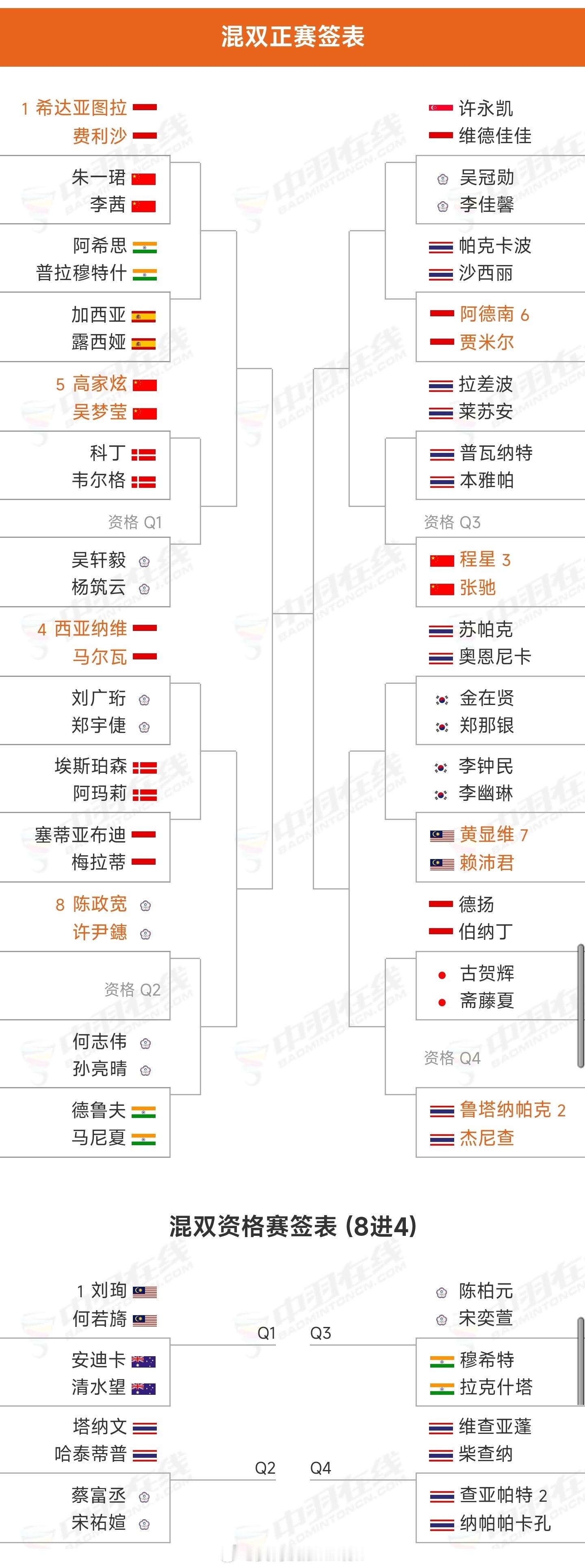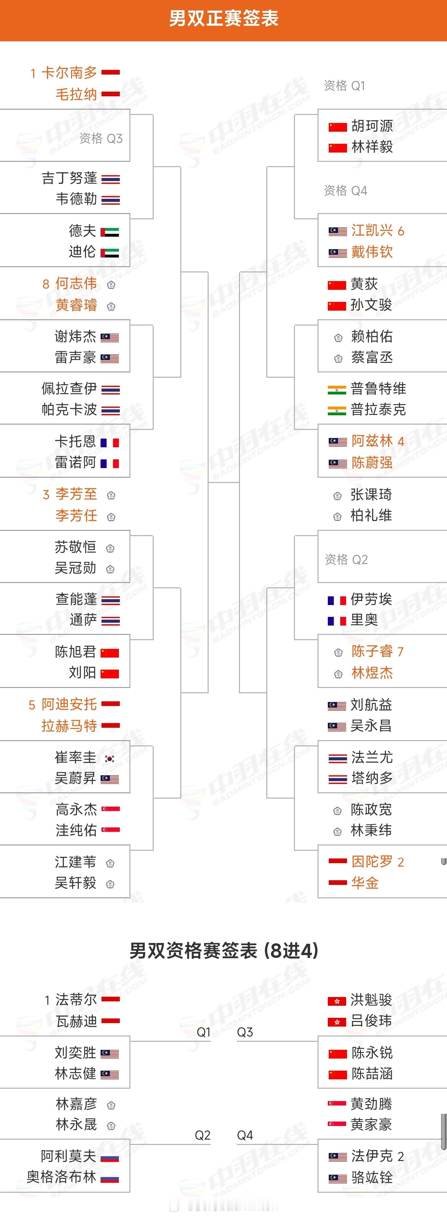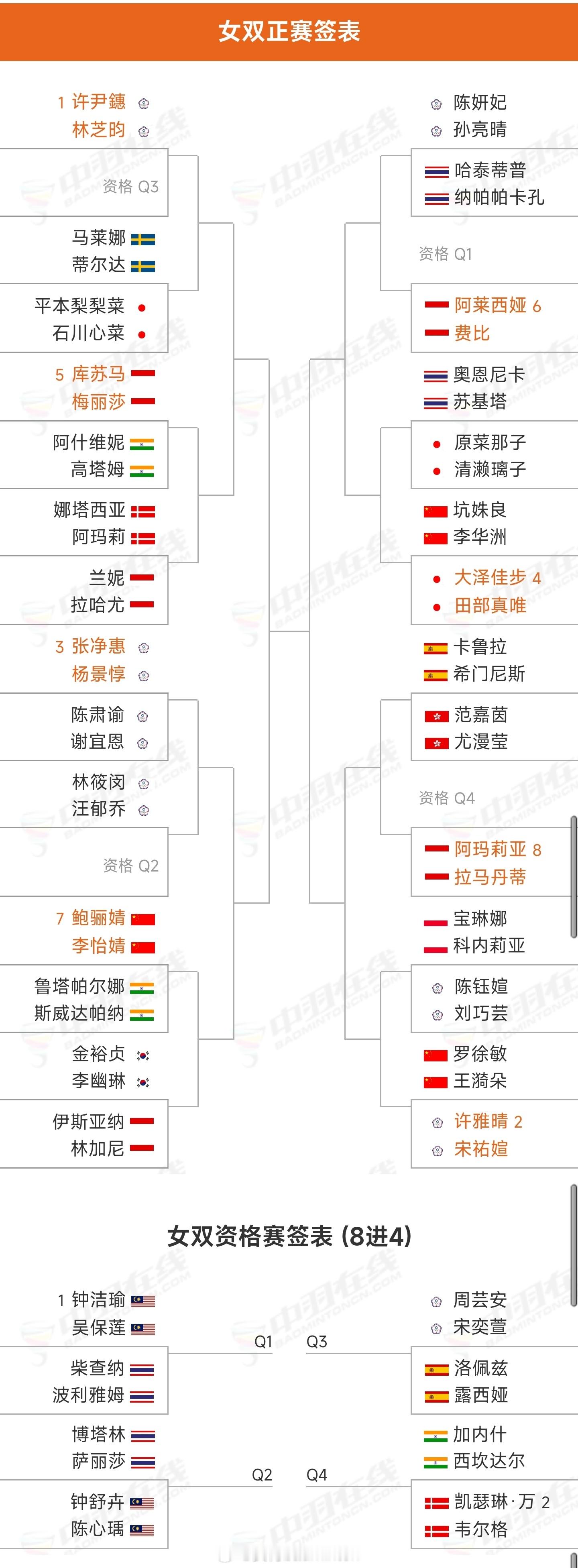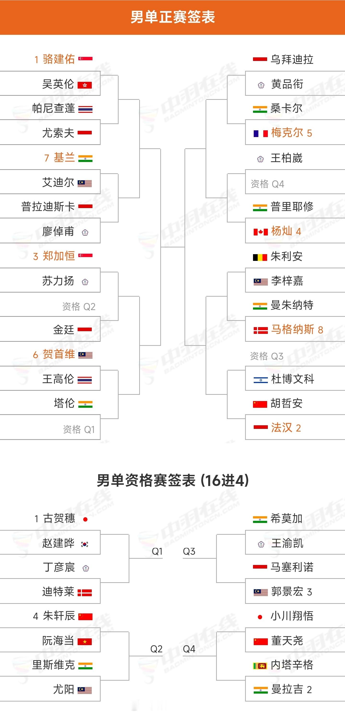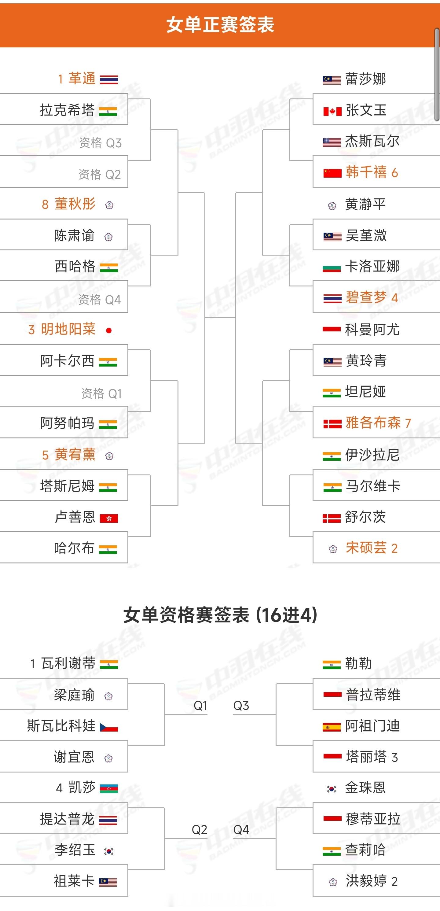 2026年泰国羽毛球大师赛【签表出炉】比赛时间:1月27日-2月1日地点:泰国🇹🇭曼谷级别:超级300冠亚积分:7000/5950⭐总奖金:25万美元💵国羽🇨🇳首轮对阵名单🟣男单(图1)胡哲安🇨🇳 vs 法汉🇮🇩Q2:朱轩辰🇨🇳 vs 阮海当🇻🇳Q4:董天尧🇨🇳 vs 小川翔悟🇯🇵🟣女单(图2)韩千禧🇨🇳 vs 杰斯瓦尔🇺🇸🟣男双(图3)胡珂源/林祥毅🇨🇳 vs Q1陈旭君/刘阳🇨🇳 vs 通萨/查能蓬🇹🇭黄荻/孙文骏🇨🇳 vs 赖柏佑/蔡富丞ᴛᴘᴇQ3:陈永锐/陈喆涵🇨🇳 vs 吕俊玮/洪魁骏🇭🇰🟣女双(图4)李怡婧/鲍骊婧🇨🇳 vs 鲁塔帕尔娜/斯威达帕纳🇮🇳罗徐敏/王漪朵🇨🇳 vs 许雅晴/宋祐媗ᴛᴘᴇ坑姝良/李华洲🇨🇳 vs 大泽佳步/田部真唯🇯🇵🟣混双(图5)程星/张驰🇨🇳 vs Q3高家炫/吴梦莹🇨🇳 vs 科丁/韦尔格🇩🇰朱一珺/李茜🇨🇳 vs 希达亚图拉/费利沙🇮🇩羽毛球