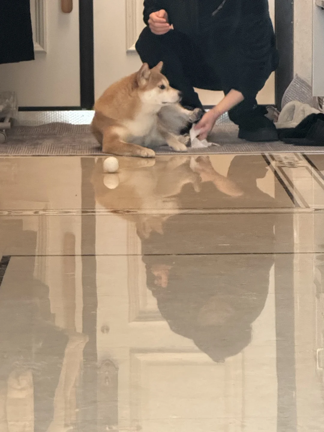 溜溜回来耗尽了体力,今天是“跪”式服务。