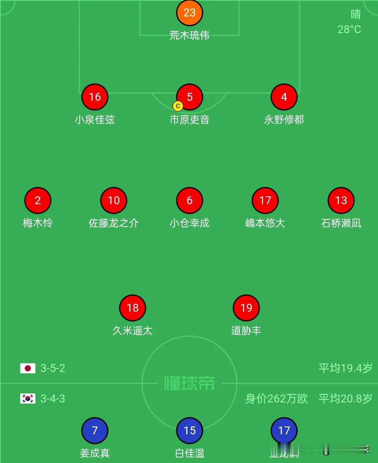 日本半决赛首发球员平均年龄才19.4岁,日本用U20球员踢U23亚洲杯,一路高歌猛进闯入四强,这就是日本足球在世界杯可以战胜西班牙、德国的原因。 韩国的首发球员平均年龄为20.8岁,这已经跳级参加U23亚洲杯了。两年后,韩国这批球员平均年龄为22.8岁,依然是下届U23亚洲杯和洛杉矶奥运会预选赛的适龄球员。 日本的平均年龄比韩国小了1.4岁,在这个年龄段,年龄相差一两岁,差距非常大。因为身体发育、比赛经验,每隔一年,都会成长迅速。 日本足球在亚洲已经处于独一档的水平