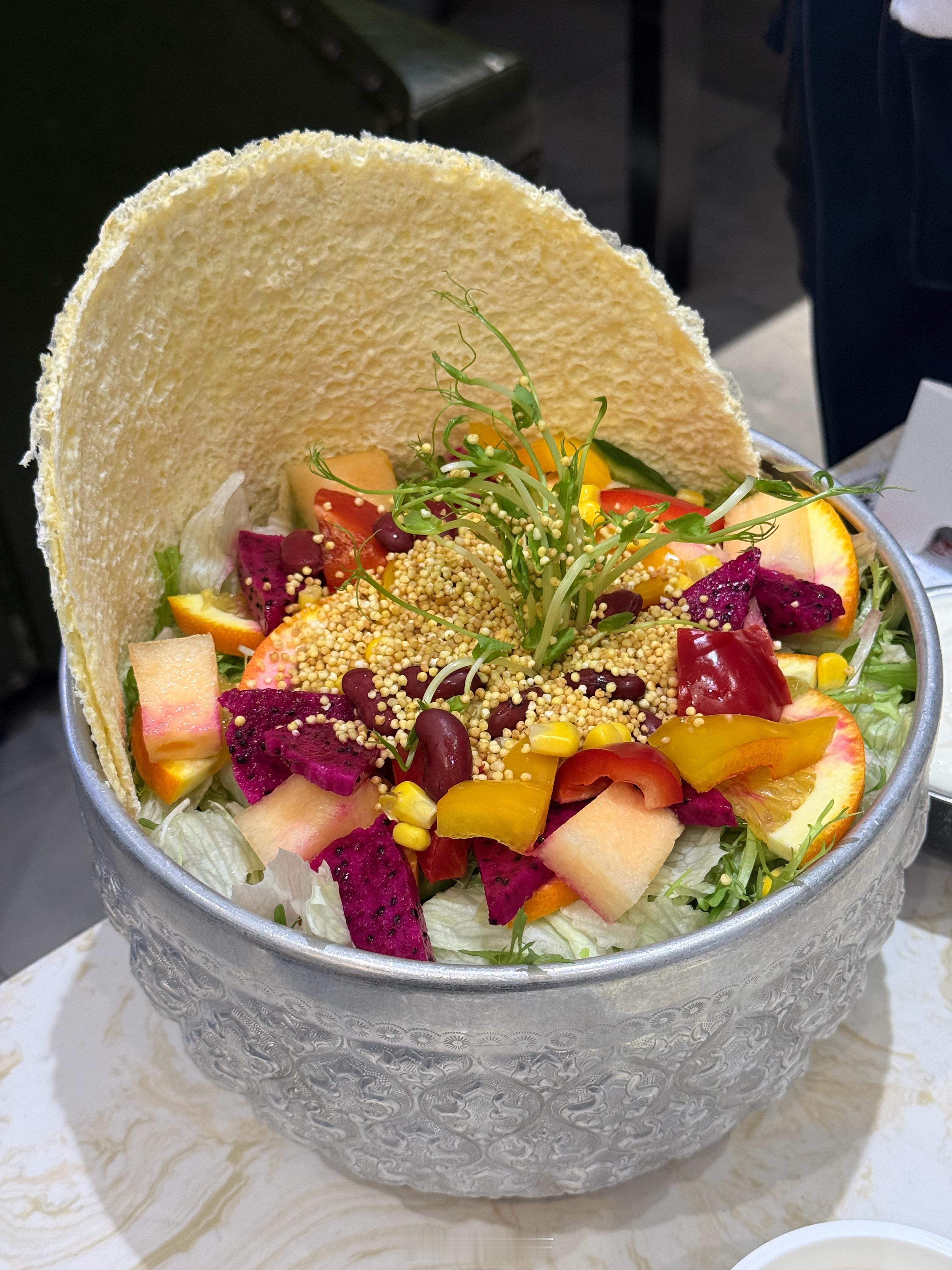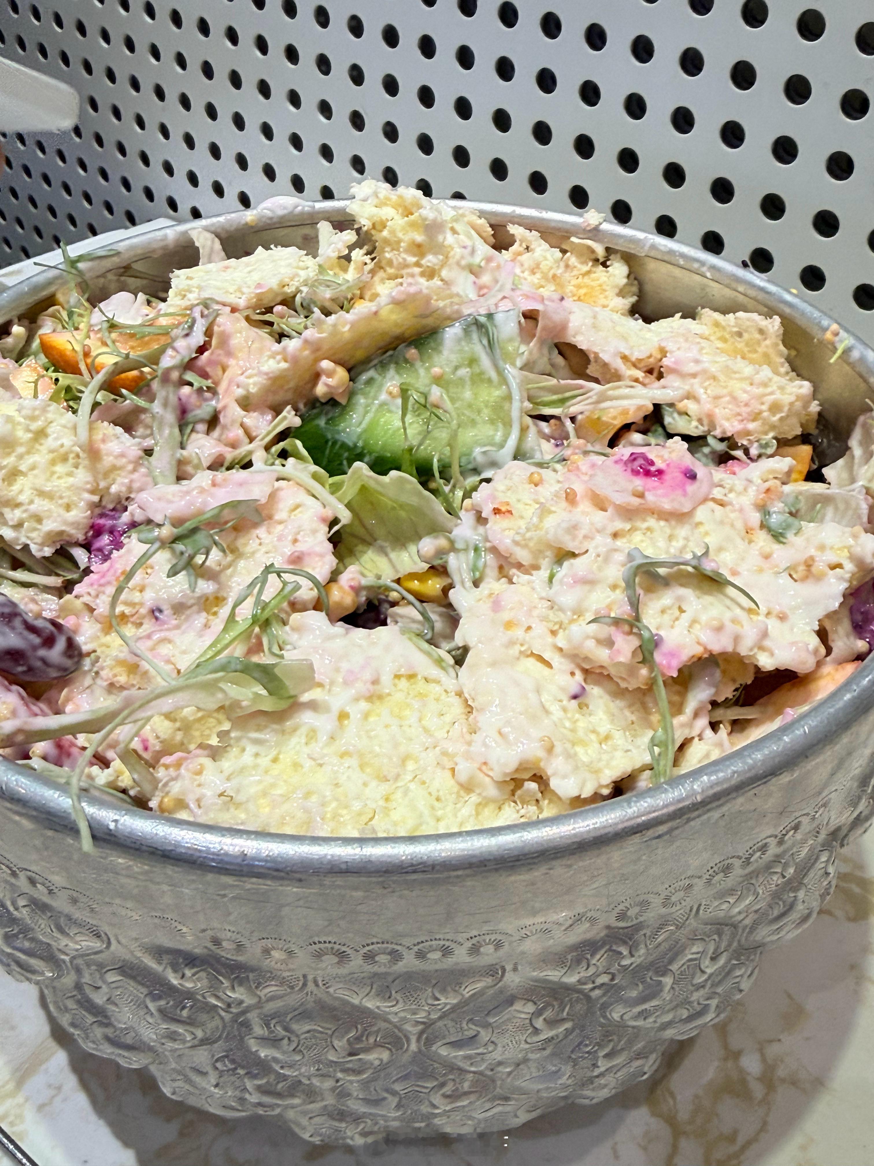 内蒙也整上花活了啊这一大盆奶皮子沙拉太顶了(ps:我真觉得只有在内蒙吃奶皮子好吃,出了内蒙的奶皮子都不行)