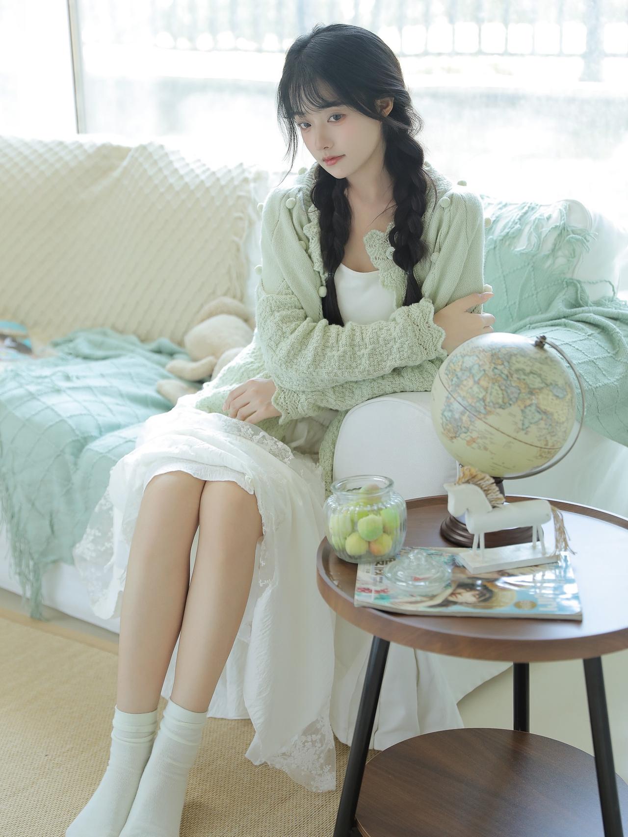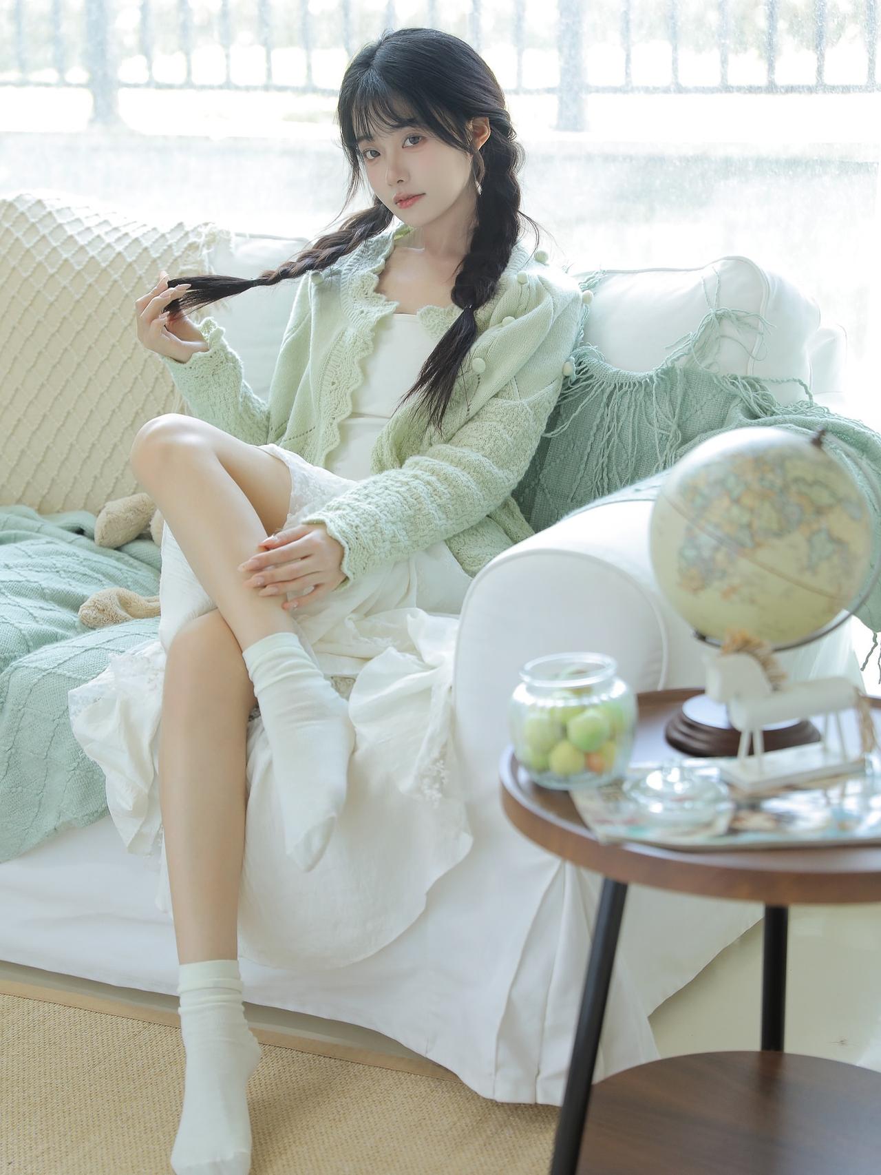 优雅白衣少女,坐在复古沙发上,散发迷人魅力。优雅自信穿搭分享