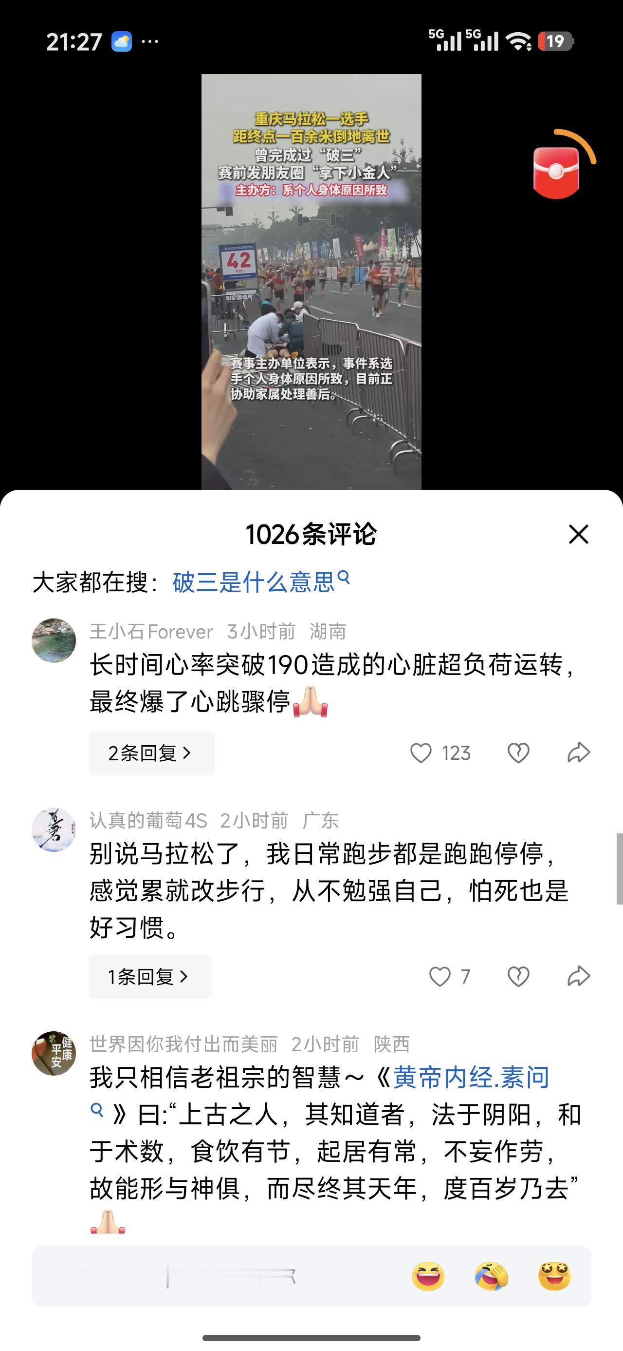 破三的重庆一名跑马人去世了。大家怎么看?其实人各有志,想怎么死,怎么离开这个世界,人的心里是有些数的。不想跑死就不去跑不就好了么?做不到。 臣妾做不到,他更做不到。这都是心性决定的。 成年人了,谁也指导不了别人的人生。 悔之晚矣。说回来,他也不后悔。