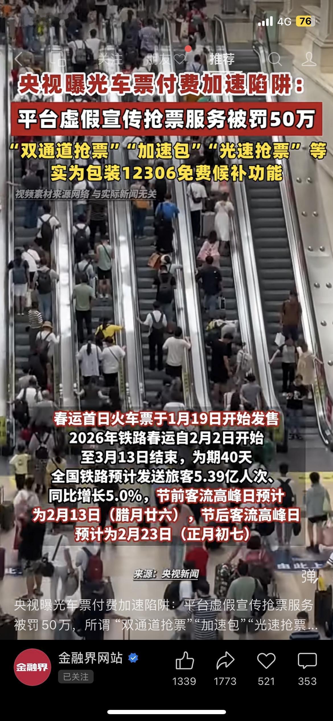 央视曝光!抢票加速包竟是智商税 平台号称“双通道抢票”“光速抢票”,其实就是包装12306的免费候补功能!涉事平台被罚50万,春运购票别再花冤枉钱。 抢票靠手速,不是靠花钱买安慰! 你买过抢票加速包吗? 春运抢票