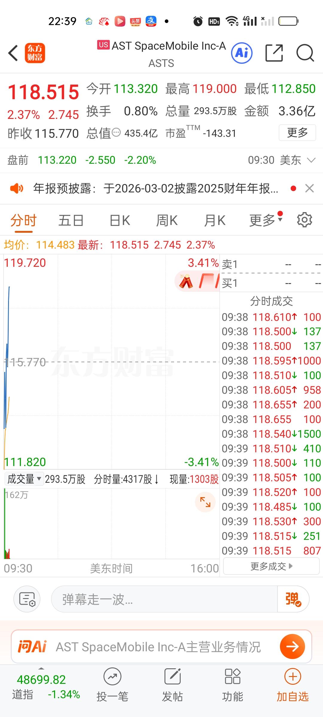 美股今天的跌幅确实有够吓人的。这算跳空超级低开了。道指开盘大跌750点,纳指开盘暴跌420点。这个跌幅肯定不算低了。我其实更想盯着它的商业航天板块,不好说我们一定会跟着它们走,但必定连续大跌,需要它们提供一些信心。好在它们的足够强,今天低开近3个点,现在也都拉红了。但是能不能保持强势说不好。
