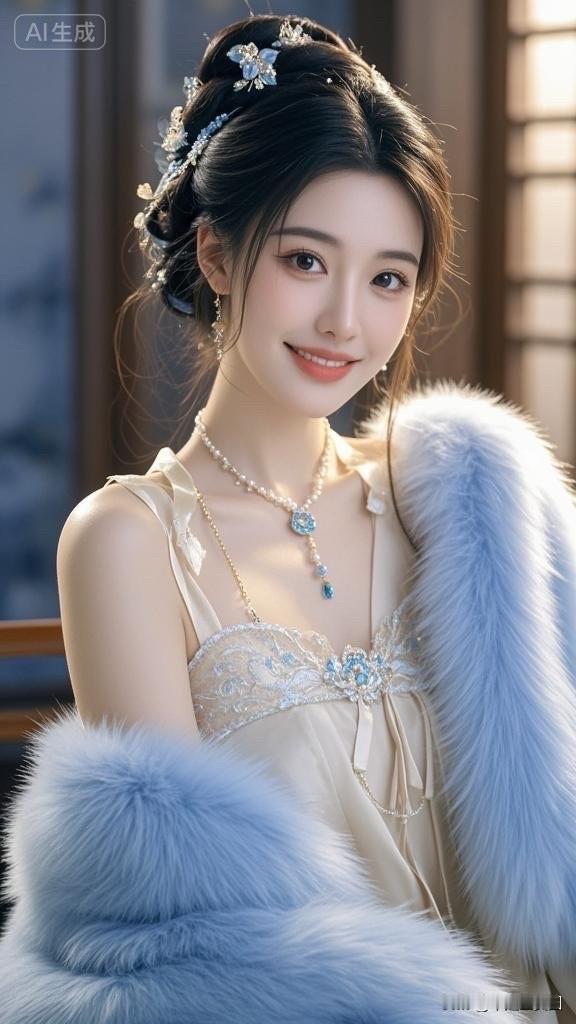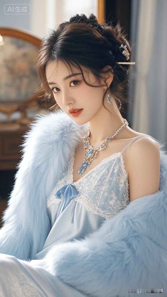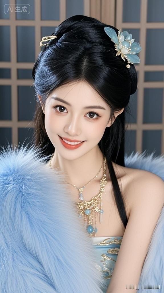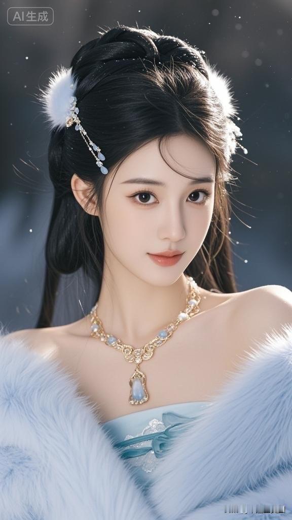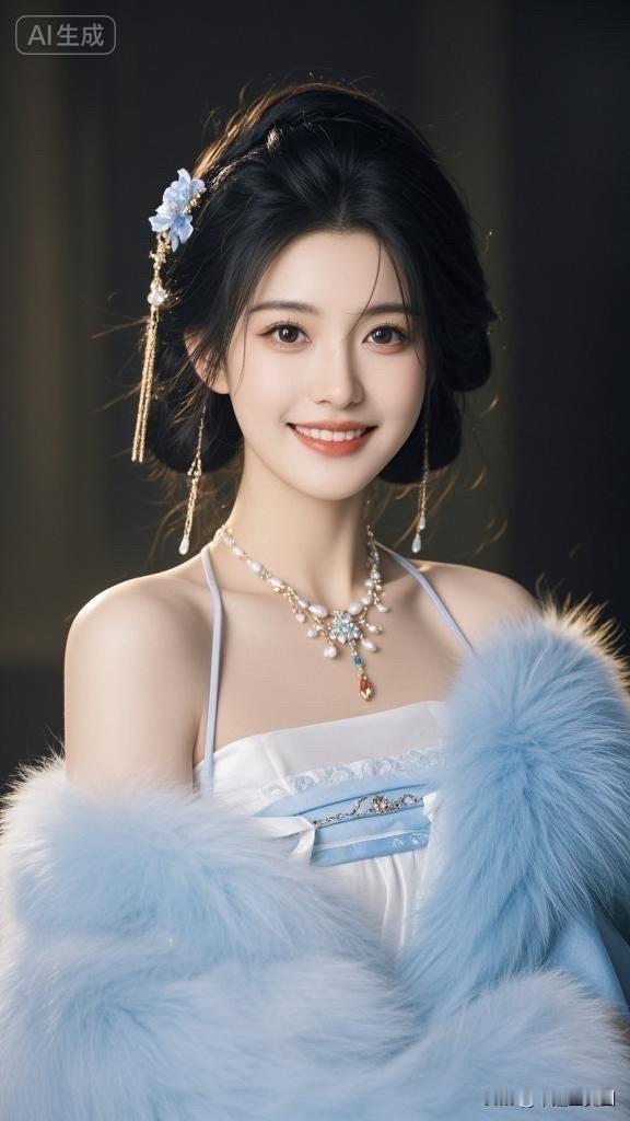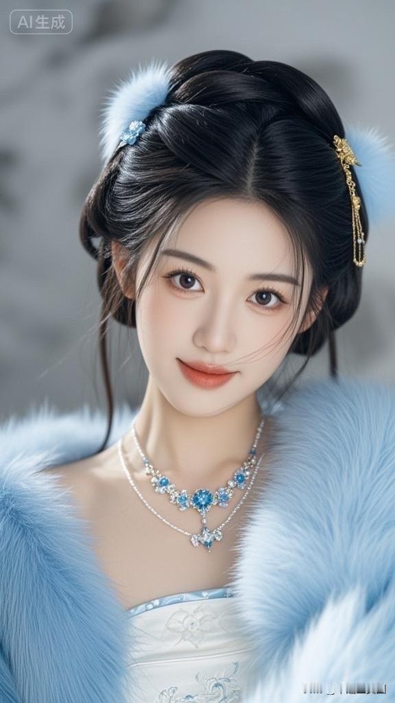 梦幻古风美人,蓝宝石项链闪耀,唯美发饰点缀,宛如画中仙子。