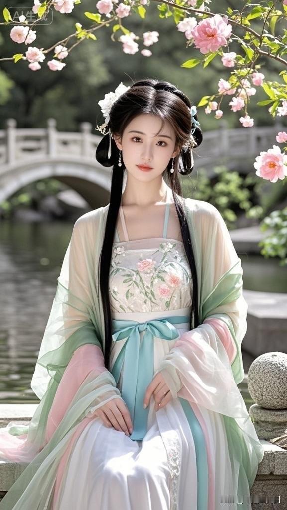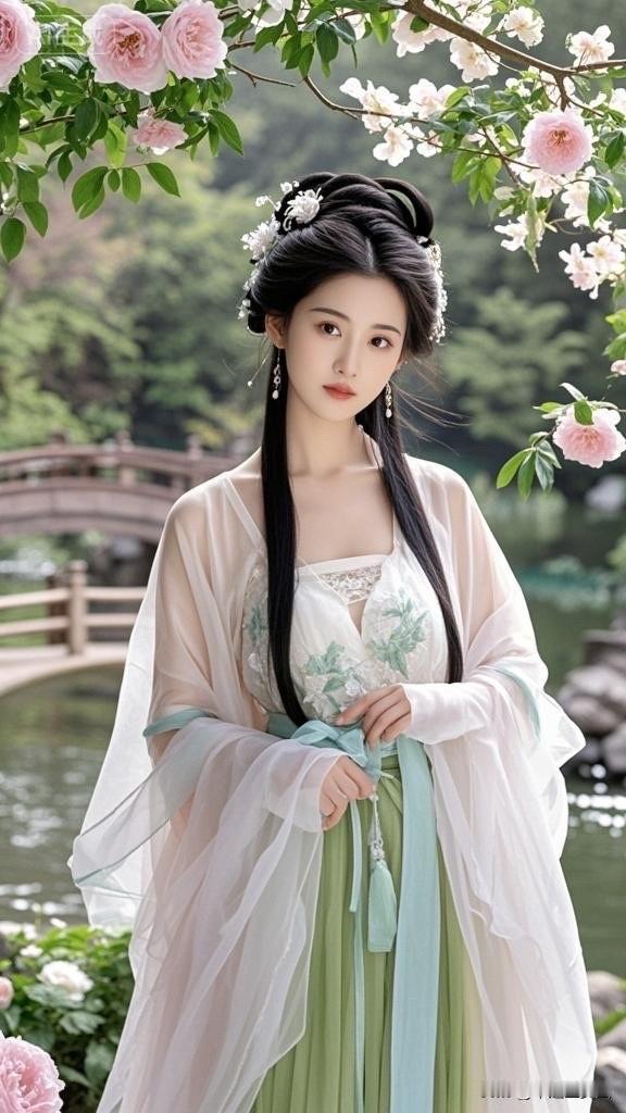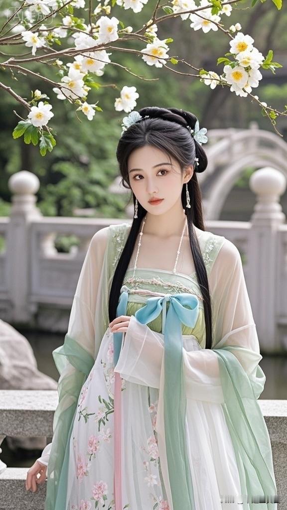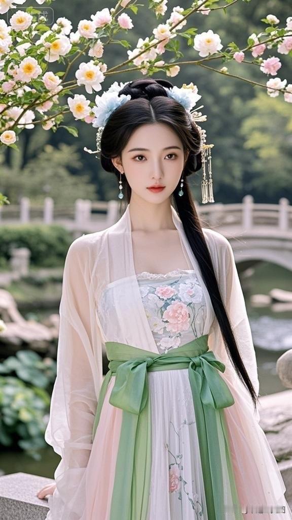 古风美人,花间仙子,一袭白衣,宛如画中人。