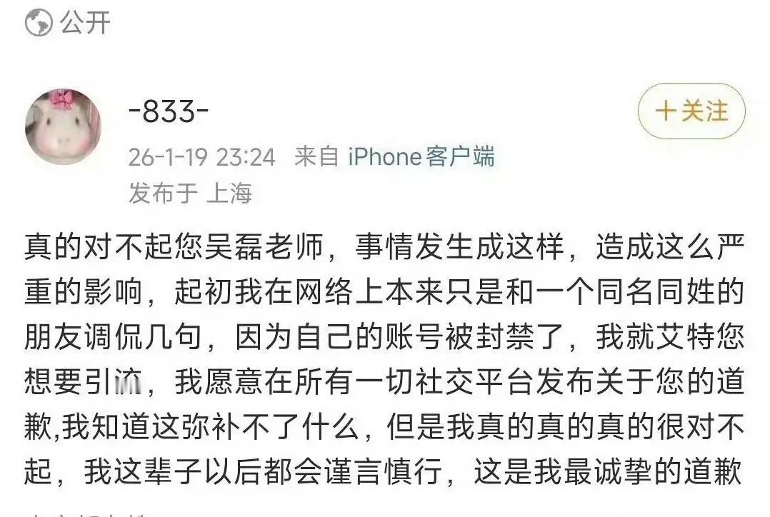 白珊珊是谁?想出名想疯了?说什么吴磊的照片?在床上的?摆拍? 笑死了,这样的人,如果不追究责任,以后效仿的会越来越多。滑轨道歉都没得用。该咋办咋办好了。给她留什么面子?嚣张的时候是咋喊的!知道自己要负责任了,赶紧出来道歉! 说什么不认识大明星,说的是普通人。这嘴是长在你身上的,咋了,你使用权卖了?不归你管了? 成年人了,说那些干啥。转发量多高啊!造成的声浪也太大了,喜提小黑屋的机会近在咫尺,这不是求之不得吗?得了,得了,小黑屋你能得到。能的很。