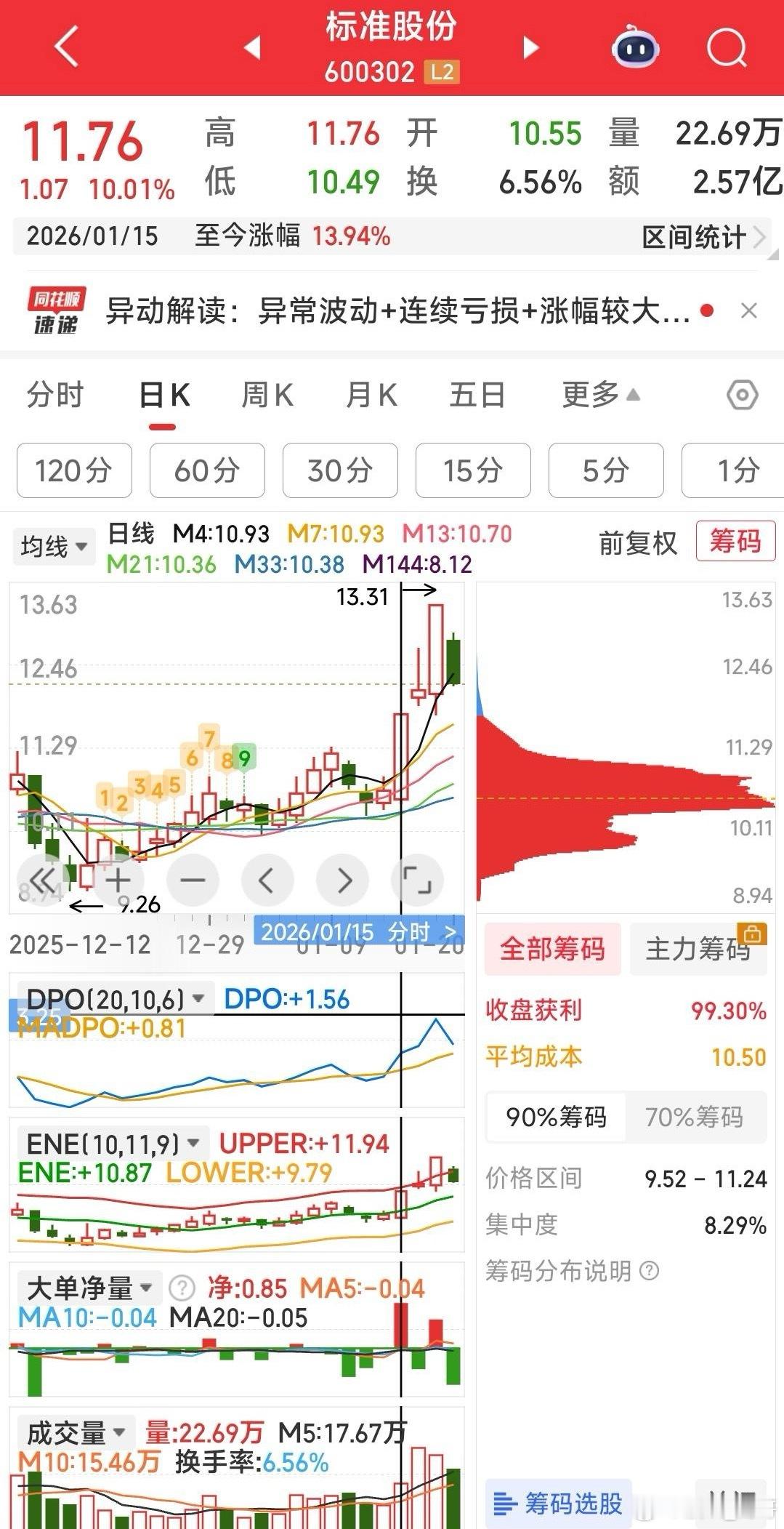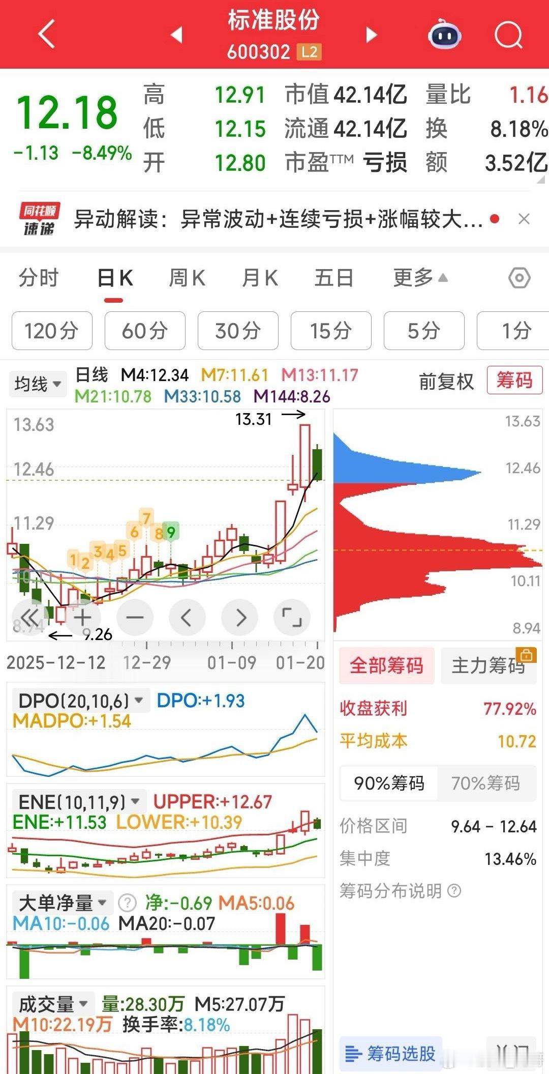 学看盘,标准股份的技术看点看看筹码峰变了没有?看看新的起点是否锁定?