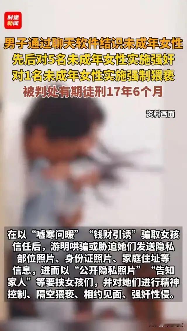 “他用一部手机,毁了6个花季”:河南南阳男子伪装“知心哥哥”诱骗未成年女孩,两年性侵6人,最小仅12岁。 “哥哥,我不想发照片……可他说要告诉我爸妈,我就怕了。” 一句颤抖的证词,揭开一场藏在手机屏幕后的恶魔行径。 河南南阳,一名30多岁的男子李某,利用社交软件伪装成“温柔知心哥哥”,主动添加多名未成年少女为好友。他先聊学习、谈心事、送小礼物,一点点瓦解她们的防备—— 然后,一步步诱导她们发送私密照片,录制不雅视频。 当女孩们发现不对想退出时,他冷笑:“我已经存了,敢说出去,就发到你们班级群。” 威胁、操控、PUA式洗脑——他把网络变成了狩猎场。 更令人发指的是:在掌握隐私后,他开始线下约见。 带上手铐、狗链、黑色眼罩,以“惩罚不乖”为名,对女孩实施性侵。 有的孩子被带到偏僻民宿,长达数小时失联; 有的甚至被拍下新视频,作为新一轮控制的把柄。 短短两年,6名未成年女孩受害,其中一人未满14周岁,属幼女。 我们总教孩子“别跟陌生人走”,可如今,恶魔正打着“朋友”的名义走进她们的生活。 他们不说“跟我走”,而是说:“我懂你。” “你是最特别的。” “只有我会一直陪你。” 这些甜言蜜语,比暴力更可怕——因为它让受害者在被伤害时,还在怀疑自己:“是不是我太轻信?是不是我做错了?” 而最痛的真相是:很多孩子不是不想逃,而是无处可逃。 她们不敢告诉父母,怕被责骂“谁让你乱加人”;不敢报警,怕“丑事”传开,成为别人眼中的“坏女孩”;甚至有家长第一反应是:“赶紧删掉照片,别闹大。” 可我们忘了问:为什么受罚的总是受害者? 幸运的是,这一次,有一个女孩鼓起勇气按下报警键。 警方顺藤摸瓜,从一条聊天记录锁定李某,查获其手机中大量非法影像资料。 最终,法院以强奸罪、猥亵儿童罪、敲诈勒索罪数罪并罚,判处其有期徒刑十五年。 正义虽迟,但未缺席。 但我们仍要大声疾呼: ⚠️ 别再让孩子独自面对网络黑暗面! 家庭、学校、平台必须联手筑起“数字防火墙”。 性教育不是羞耻,而是保护; 网络监管不能只靠自律,更要技术拦截与法律震慑。 最后,请告诉家里的女儿(或儿子):你没有错。 相信你的人,不该让你害怕。 如果有人用秘密控制你—— 那不是爱,是犯罪。 请立刻告诉大人,我们永远站在你这边。 你敢让你的孩子一个人上网吗? 评论区聊聊:我们该如何教会孩子,在虚拟世界里安全长大? 未成年人强奸案