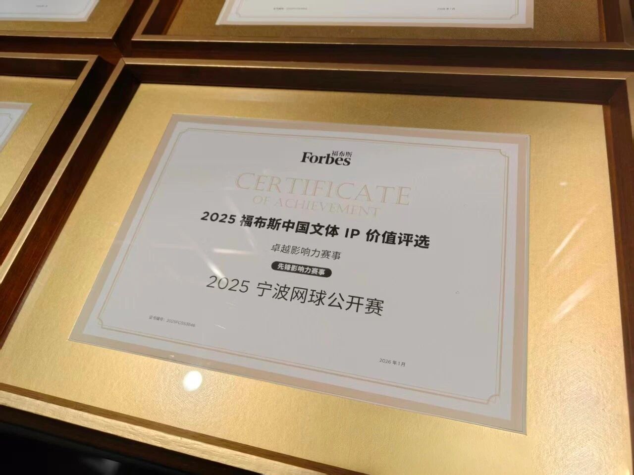 网球talking大会恭喜2025宁波网球公开赛荣获福布斯中国文体IP先锋影响