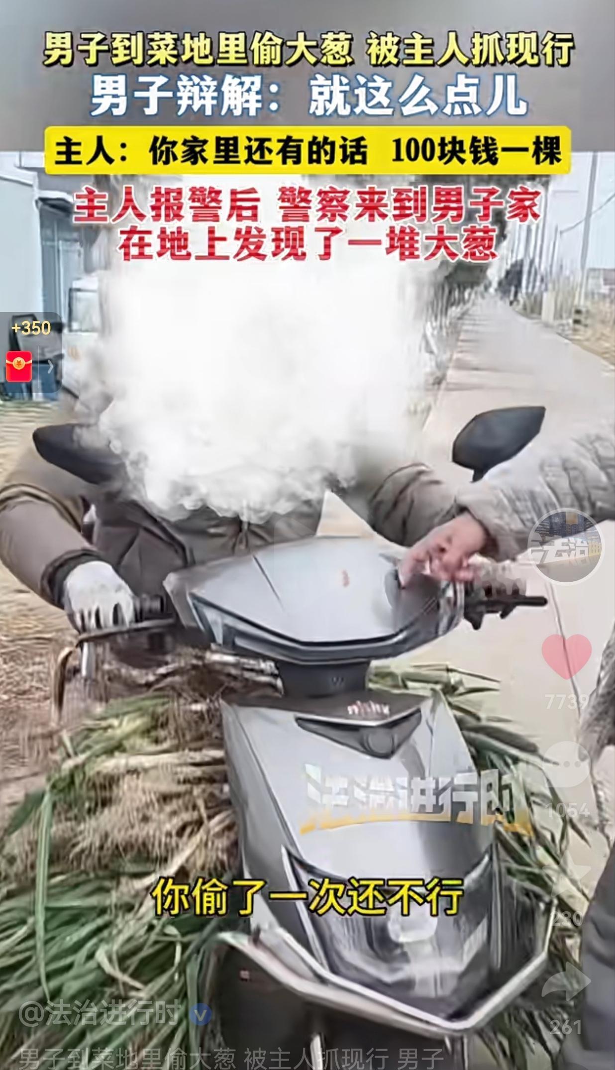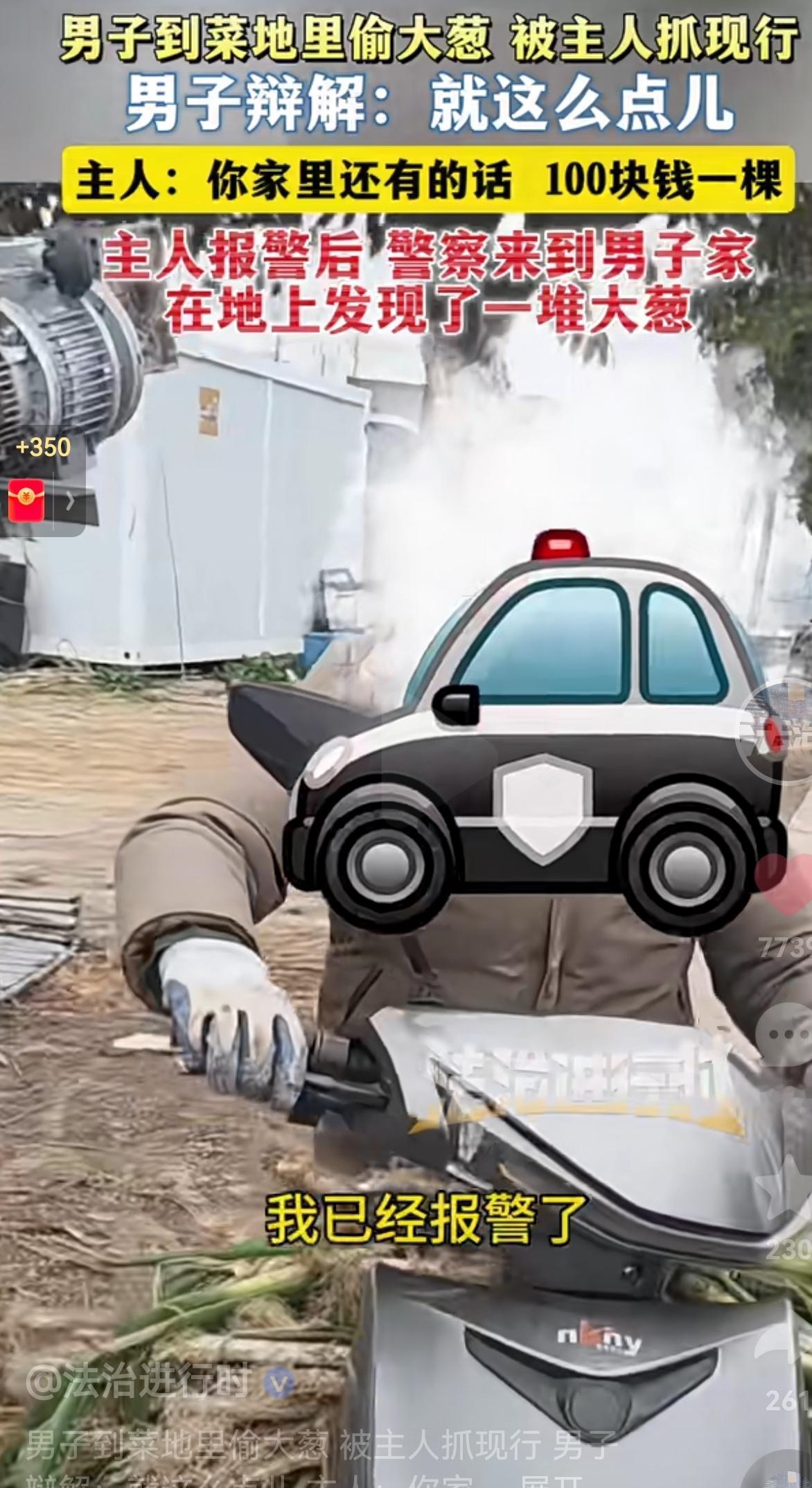 这种人太可恨了!一点葱能值几个钱?为什么这么爱贪便宜呢?江苏一位男子骑着电动车,跑到人家家门口的菜地里偷大葱,正好被主人抓了个现行。 主人一下子拦住了他,生气地质问道:“你不去买?你到我家门口来偷,你偷了一次还不行,我告诉你,今天你哪里都去不了,我已经报警了,我让你给我偷的一棵都不剩。” 面对女主人的质问,他还理直气壮地辩解:“你就这么点儿!” 主人当场回怼:“我要到你家里去啊,我看你家里还有没有!你家里还有的话,100块钱一棵!” 男子还嘴硬:“你当我是大富豪!” 随后,民警接到了报警,来到了男子家中,这不来不知道,一来吓一跳,发现地上堆着一大堆偷来的大葱,甚至都已经剥好了。 原来他不是第一次作案,而是把人家的菜地偷得“一棵不剩”。主人看着满地大葱又气又笑:“你还帮我剥好了!” 网友看到后评论说:“都几十岁的人了,为了一点不值钱大葱丢了脸面,还可能被拘留罚款,太不值当了!” 还有的网友说:“把人家的大葱都剥好了,这也太秀了吧,这是把别人菜地当自家菜园子了?惯犯实锤!” 从男子的行为看,他根本没有意识到自己的错误,他还觉得偷几根葱是小事,何必要小题大作呢?殊不知“勿以恶小而为之”。 主人那句“100块钱一棵”,看似是气话,实则是对这种“小恶”的有力反击。 通过这个事儿也给所有的人提了个醒:不要小看任何一件小事,因为所有的大错,都是从小错开始的。 话说,如果你遇到这种“就这么点儿”的小偷,会选择放过他,还是像这位主人一样追究到底?