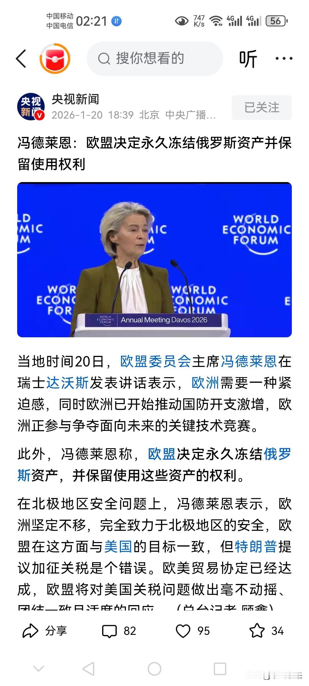 欧盟这是彻底要和俄罗斯撕破脸了!一点也不装了! 欧盟委员会主席冯德莱恩称:欧盟决定永久冻结俄罗斯资产,并保留使用这些资产的权利! 欧盟这跟明抢没有区别,冻结就算了还永久,永久就算了还保留使用俄罗斯资产的权利! 欧盟这是做好和俄罗斯彻底决裂的准备! 俄罗斯也毫不客气,直接回怼! 俄罗斯发言人称:欧盟等着俄罗斯的报复吧! 欧盟面对美国加征关税一点脾气没有,转身就拿俄罗斯开刀,真是惹了不该惹的人,俄罗斯接下来的报复会更加猛烈!欧盟委员会