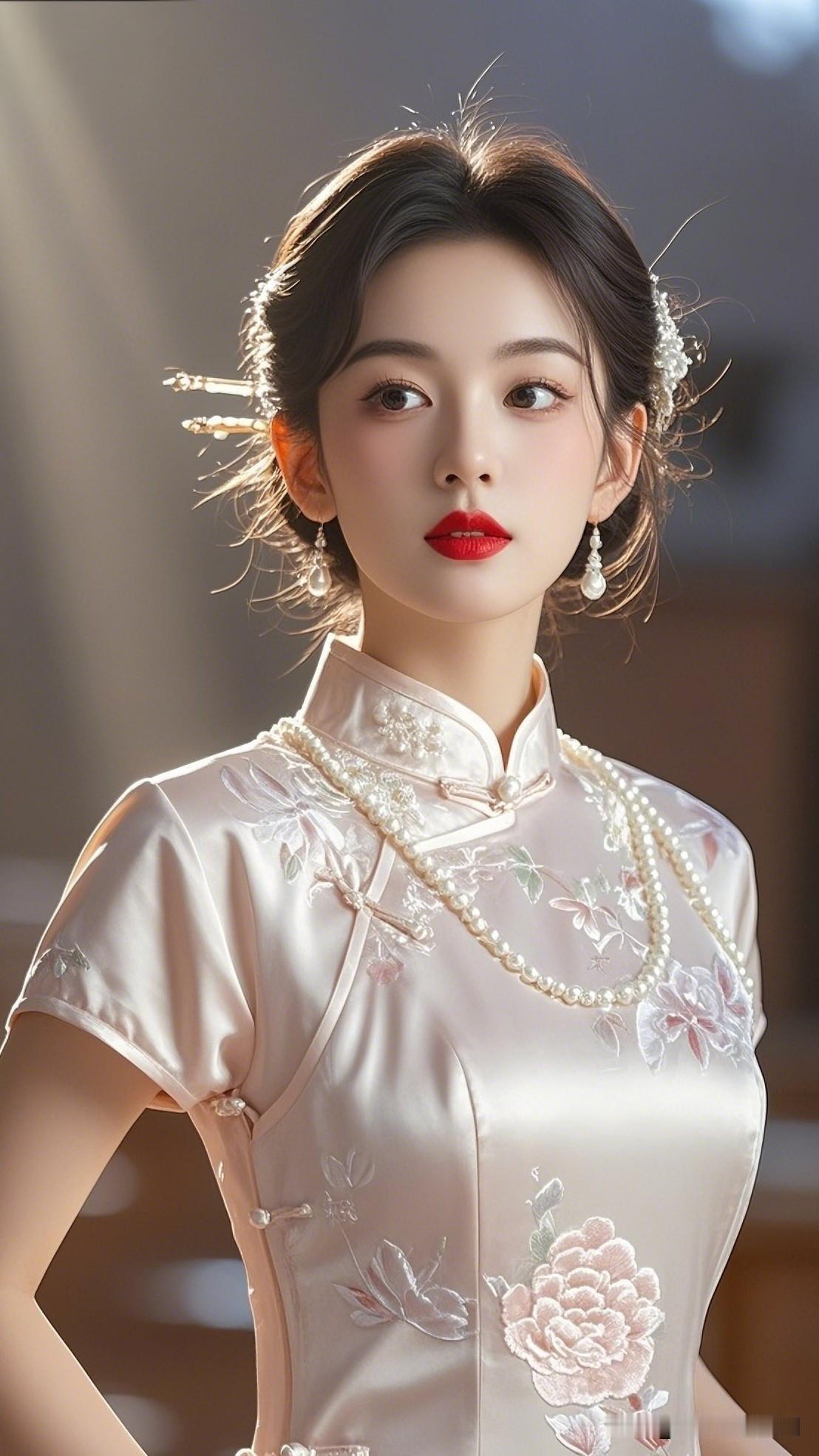 红妆美人,花钿映月。看看气质女神的穿着搭配吧 复古旗袍,惊艳时光,红唇与珍珠的完美搭配,尽显东方韵味。