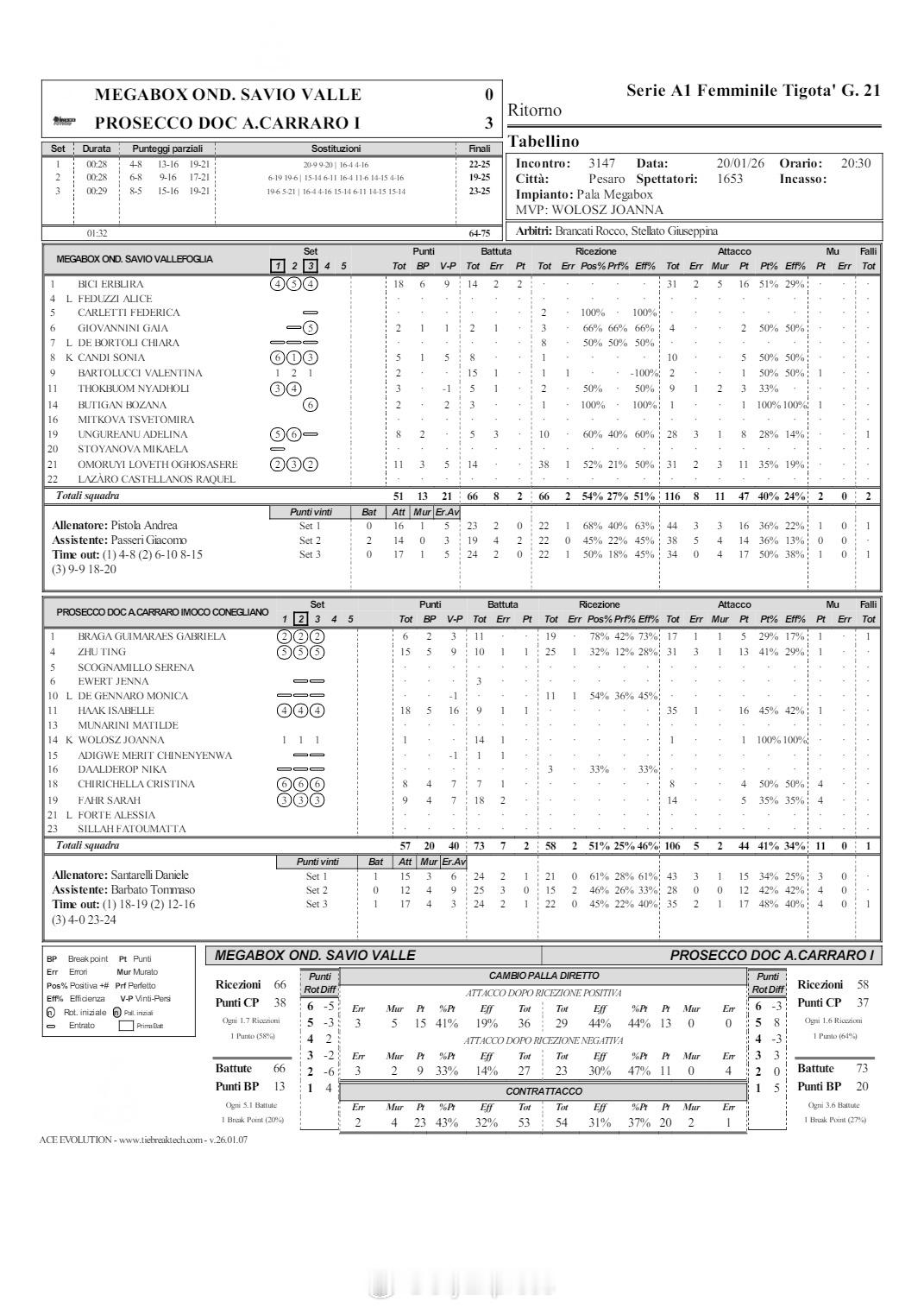【意甲女排科内零封瓦莱福里亚 朱婷15分】中国排球留洋动态国际排坛战报速递1月20日佩萨罗,意甲女排第21轮,科内利亚诺客场3-0(25-22/25-19/25-23)零封瓦莱福里亚,哈克18分、朱婷15分(31扣13中1发1拦)、沃沃什荣膺MVP,比希18分、奥莫鲁伊11分。