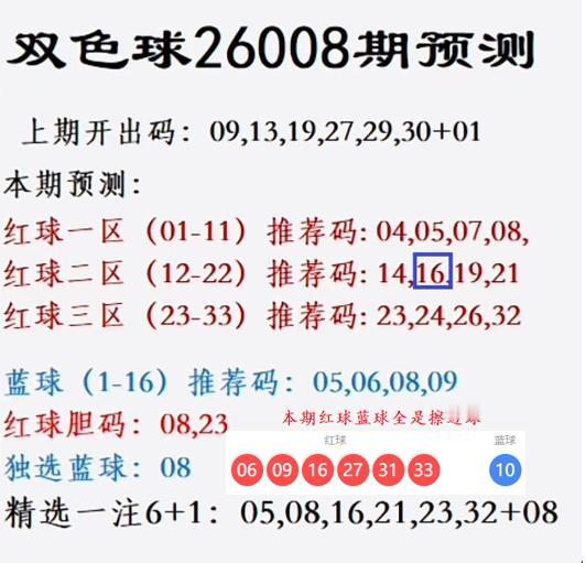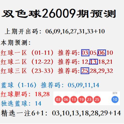 好运连连,捷报再传!上期双色球26009期再度斩获4+0,近期手感持续火热——最近五期预测,已有四期成功命中奖项: 26005期:喜中4+0 26006期:再获4+0 26007期:拿下2+1,两枚红球胆码全部命中 26008期:虽未中奖,但红蓝号码皆擦边而过,仅一步之遥 26009期:又一次收获4+0 今年似乎与双色球格外有缘。去年大乐透最高曾预测中得3注二等奖,而今手感正炽,莫非今年双色球的一等奖,也已在不远处等候?