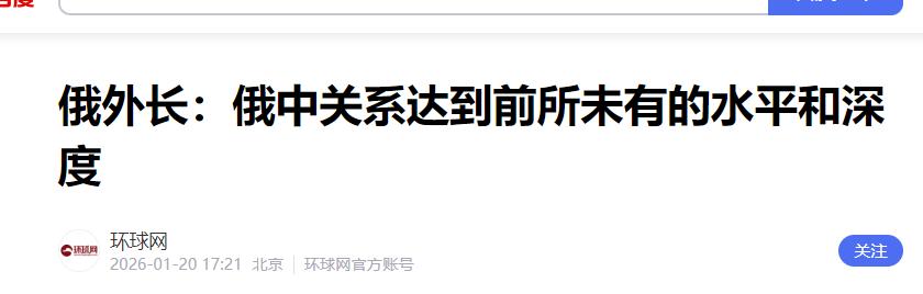 拉夫罗夫最新涉华言论曝光:前所未有! 据塔斯社20日报道,对于俄罗斯与中国之间的关系,俄罗斯外长拉夫罗夫在记者会上称,两国之间的关系达到前所未有的水平和深度。 如今,中俄两国正在联手干一件大事,目标很明确:绕开西方,另起炉灶,建一个全新的世界秩序。 看看两国外长这一年来的密集互动就知道了。从约翰内斯堡到北京,会谈一次接一次。 官方发布的通报里,“战略协作”、“高层交往”这些词反复出现,说明双方在政策层面的沟通已经非常顺畅和深入。 经济上的联系是基础。2024年,两国用人民币结算的贸易额冲到了1.74万亿元,创了新高。 但事情不是一帆风顺的,到了2025年前十个月,因为支付渠道遇到些麻烦,用美元计算的贸易额有所回落。 这恰恰说明,旧的金融体系正在成为阻碍,也反过来促使双方必须加快摆脱依赖。 过去,世界经济的运转依赖两大支柱,特定货币的结算地位和对关键航运路线的控制。这也是金融制裁为什么总能奏效的原因。 中俄正在做的,就是从根本上动摇这两大支柱,建立一个能自我运转、不受外部干扰的经济区。 具体怎么做?首先就是货币。两国贸易越来越多地用本币结算,直接绕开了美元,让金融制裁的威力大打折扣。 同时,新的物流路线也在加紧打通。北极航道开始启用,横跨欧亚大陆的铁路网越织越密。 过去那种“谁控制马六甲,谁就掌握亚洲贸易”的旧观念,正在被现实打破。这两件事加起来,就是要建立一个相对独立的经济循环,让单方面的经济威慑不再那么管用。 在安全上,中俄也选择了另一条路,不是北约那种非友即敌的军事同盟。双方的核心原则很明确:“不结盟、不对抗”。 这给了彼此很大的空间,既可以进行像2025年海上联合军演这样的深度合作,又不需要为对方所有的战略目标站台。 更关键的是,这个安全框架是开放的,欢迎大家一起参与。比如计划中的2026年金砖国家联合演习,不仅有成员国,还准备邀请印尼、埃塞俄比亚这些国家。 这传递的信号很清楚,地区安全是大家的事,应该共同维护,而不是少数几个国家拉小圈子说了算。 这种做法,和美国在亚太地区不断强化军事同盟,甚至在菲律宾部署攻击性武器的行为,形成了直接对比。 再加上新的天然气管道和已有的石油管线,能源大动脉被牢牢固定在大陆内部。这样一来,谁也别想通过封锁海上通道来卡脖子。 所有这些努力,最终都指向一个目标:改变全球事务由个别国家说了算的局面。上海合作组织和金砖国家,就是实现这一目标最重要的两个平台。 为什么这么多国家愿意加入?因为在这些机制里,大家是平等的,可以坐下来商量着办,并非谁拳头大谁说了算。这种被尊重的感觉,在今天的国际关系中非常难得。 除了这些宏大叙事,两国也在为长远关系打下基础。文化年、教育交流活动一个接一个,数万名留学生在彼此的国家学习生活。人心通了,长远的合作才有根基。 世界也看在眼里,中俄在拉美等地,更多是去投资、搞建设。这种靠共同发展来扩大影响力的方式,本身就是对旧有武力规则的一种颠覆。 所以,现在再来理解拉夫罗夫那句“前所未有”,就能品出更深的意味。它不单单是形容两国关系有多好,更像是一份宣言,一个建立在经济自主、安全开放、多方共治基础上的新格局,正在慢慢成形。 信息来源:《俄外长:俄中关系达到前所未有的水平和深度》,环球网,2026年1月20日。