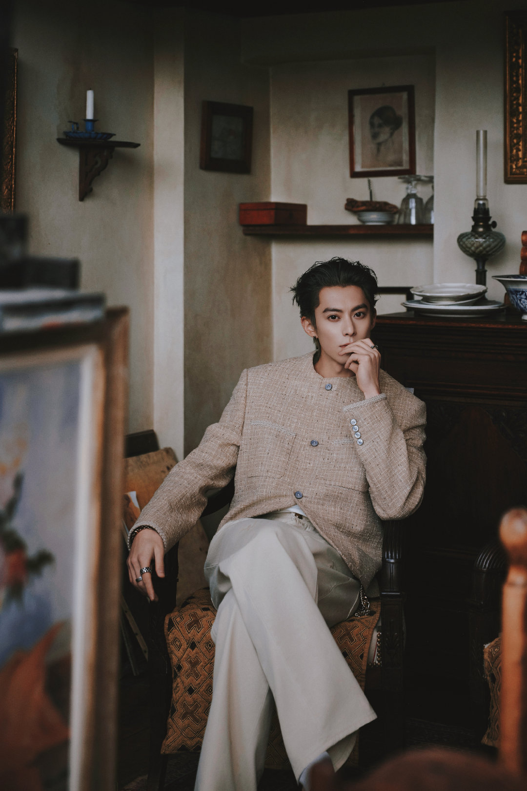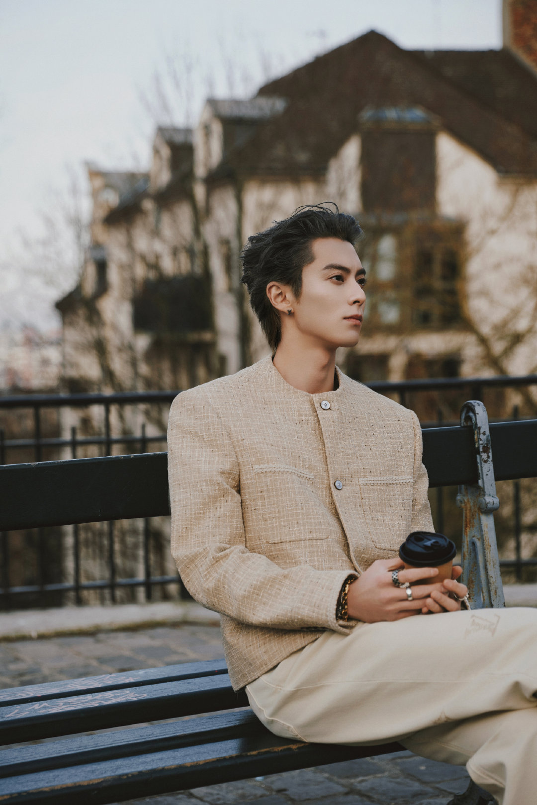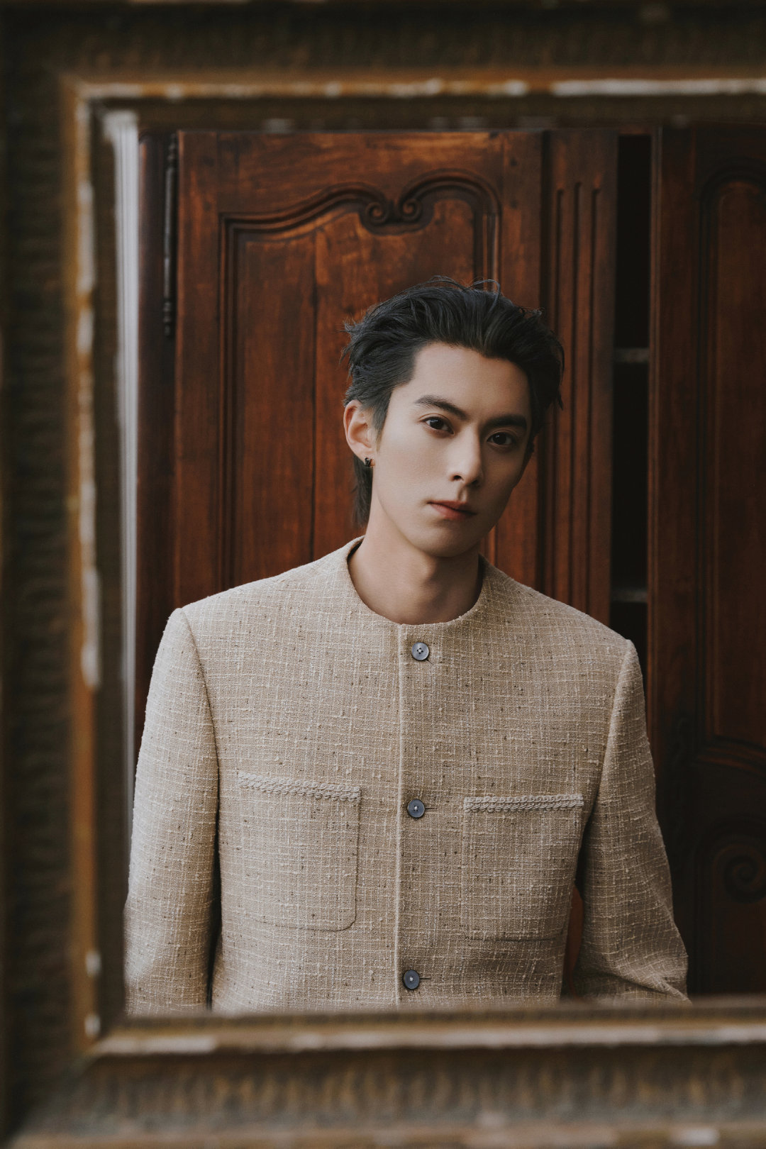 王鹤棣|路易威登2026秋冬男装秀看秀造型出图,身穿2026早秋男士系列米色套装,搭配银灰大背头,LV贵公子就这么闪耀巴黎✨LV大秀巴黎男装周
