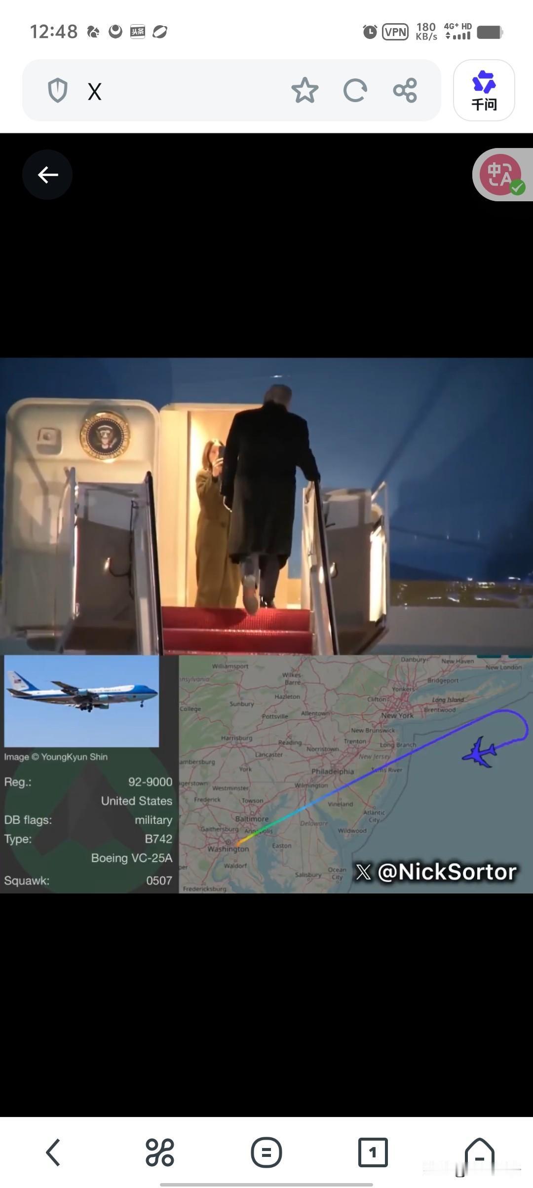 特朗普专机突然掉头 今天上午,美国总统特朗普专机空军一号原本定于在当地时间晚上21点从华盛顿飞往瑞士参加达沃斯论坛并发表演讲,但是飞机刚飞过纽约后突然掉头飞回华盛顿,目前还不清楚是什么原因。是特朗普总统临时改变主意?还是空军一号出现了故障,具体有什么突发情况现在没人,要等专机降落华盛顿才清楚。