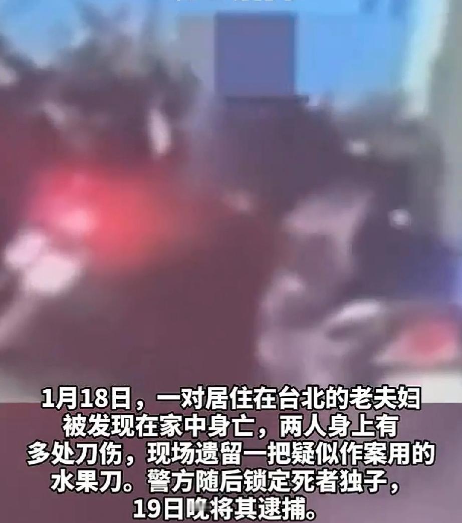 台湾新北发生了一起惨剧。36岁的男子将其年近七、八十岁的父母杀害了。 男子被警方抓获。从男子的供述和他父母被刺的刀数可推断出,母亲溺爱孩子,孩子每次要钱她都给。父亲恨铁不成钢,屡屡骂他。这次骂他,男子忍不住了,拿刀刺父。母亲护住父亲,男子已失去了理智,挥舞水果刀乱砍乱刺一通。两个年老体弱的老人怎敌得过身强力壮的汉子,结果双双殒命。 爱孩子,不能教子无方,否则就会出逆子。 记录我的2026