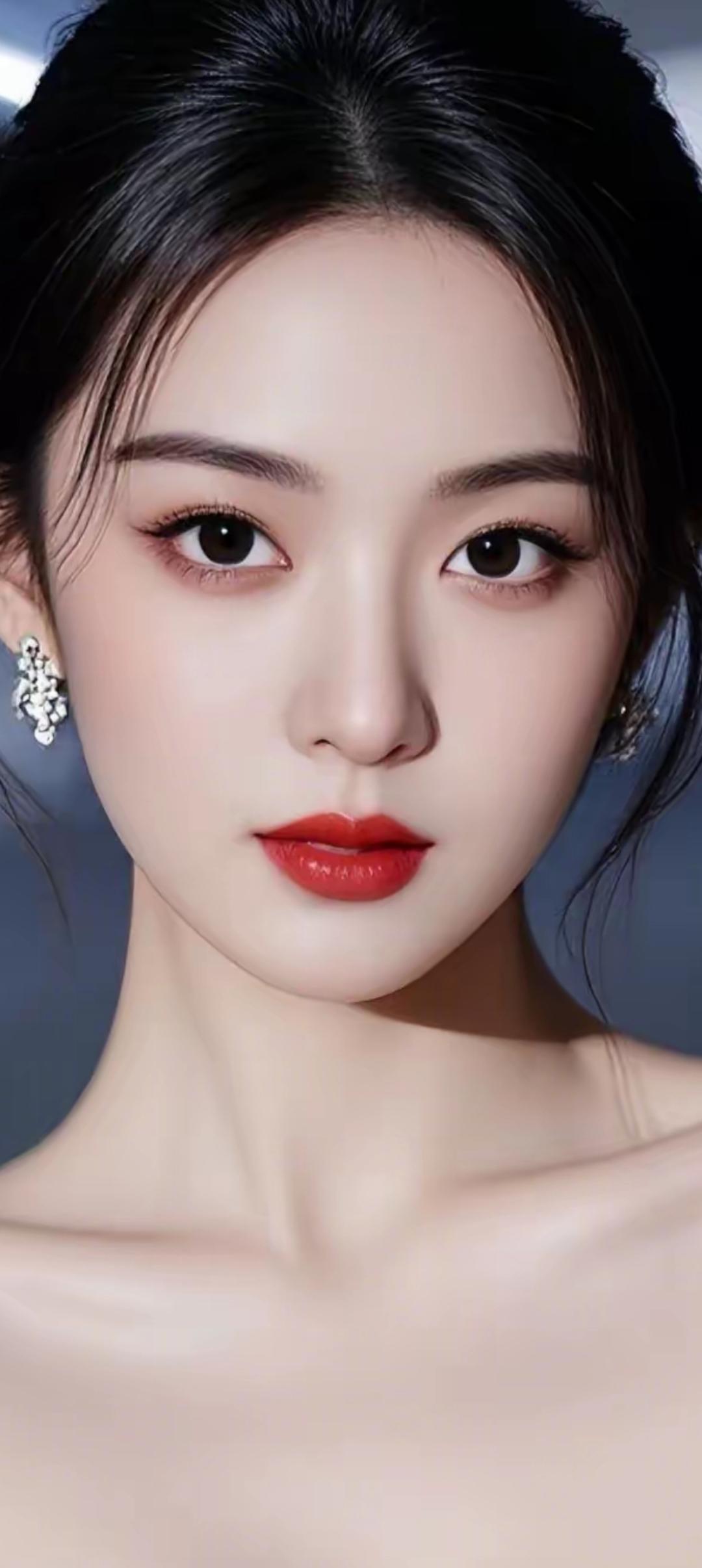 优雅黑发,闪耀耳环,红唇诱惑,气质满分!