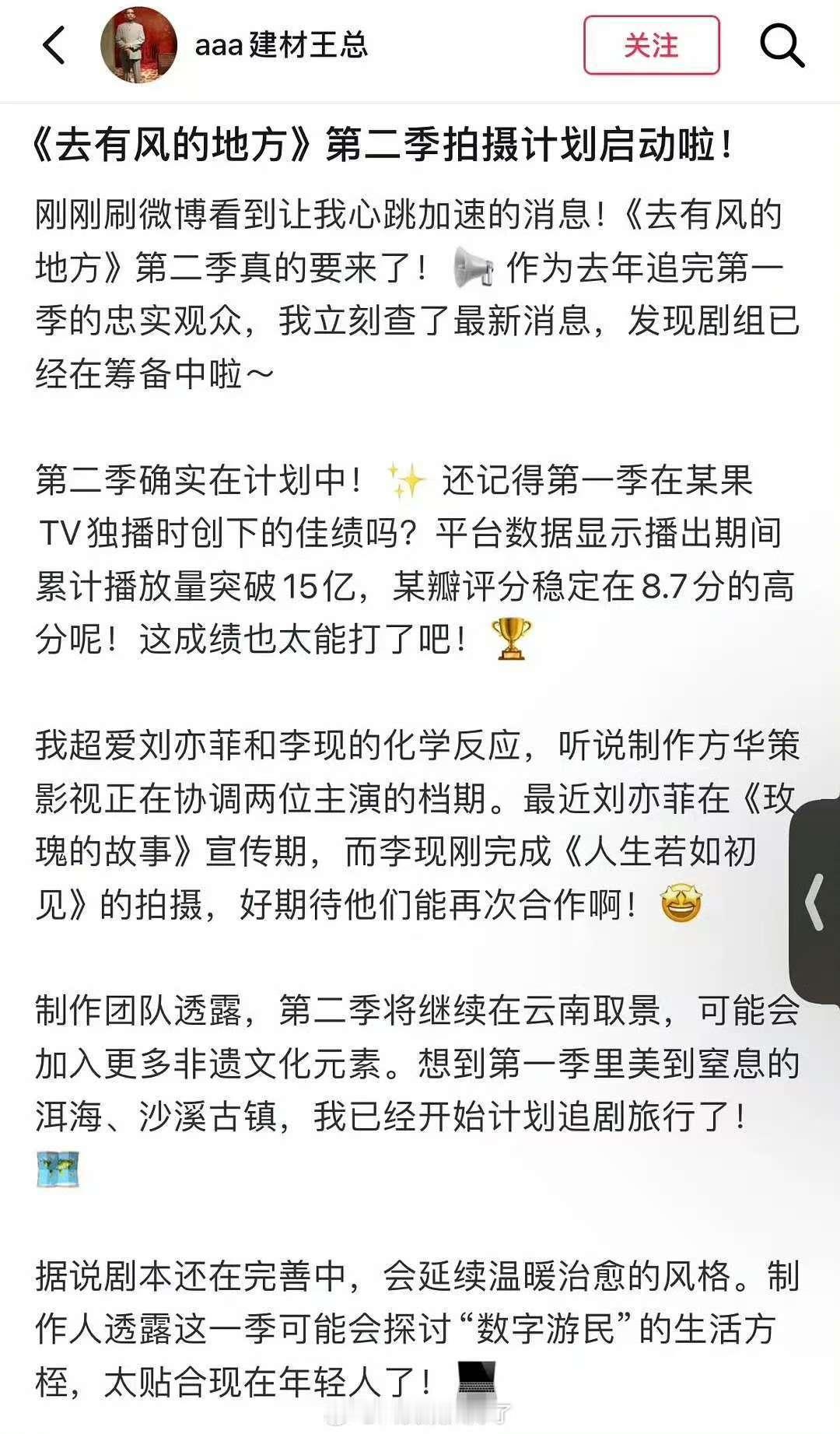 网传去有风的地方要拍第二季要拍第二季了?我接接接!