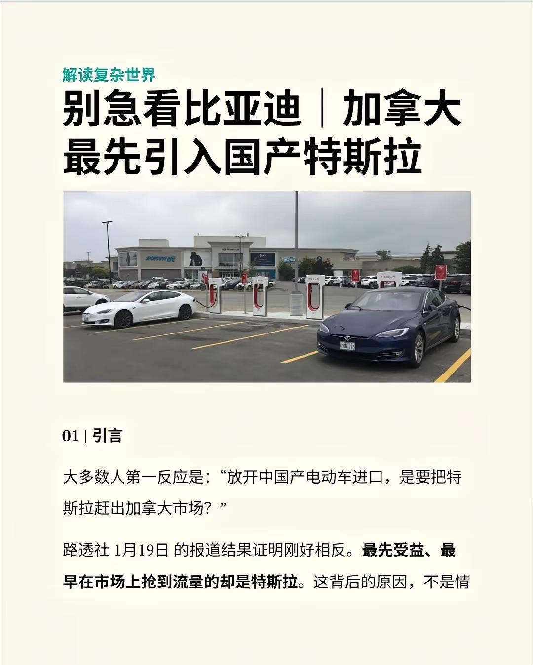 加拿大对中国电车开了扇门,但第一个开车进来的,很可能还是中国造的特斯拉。 大多数人一看到消息,可能觉得比亚迪们的机会来了。 但市场最不认的就是“应该”。政策窗口一开,能第一时间挤进去的,从来不是看谁呼声高,而是看谁早就把脚卡在了门缝里。 这次特斯拉能抢跑,是因为它三年前就在上海工厂准备好了符合加拿大规格的Model Y。关税一加征,它可以从容转用美、德工厂供货;关税一下调,它上海的产能立刻就能接上。这种全球产能的弹性,是新品牌短期内很难具备的硬实力。 还有更关键的,是那张现成的网。 特斯拉在加拿大有39家直营门店,销售和服务的体系是现成的。对比之下,中国品牌在加拿大基本还是从零开始。车卖出去只是第一步,后面漫长的维修、保养、零部件供应,对消费者来说都是实打实的顾虑。这就像你去一个陌生的城市吃饭,一家是知名连锁,一家是没听说过的特色馆子,哪怕后者可能更好吃,大多数人的第一选择往往还是前者。 规则本身也在帮特斯拉清除障碍。 每年4.9万辆的配额里,有一半是留给售价低于3.5万加元车型的。这看起来是在扶持平价车,给中国品牌机会。但细想一下,中国品牌要把车运过去,加上关税、运输、本地经销成本,还能不能守住这个价格线,本身就是个问号。而特斯拉的主销车型虽然高于这个价,但它能立刻吃下另一半配额市场,几乎没什么对手。 所以你看,这根本不是一场公平的起跑。新玩家还在研究赛道规则、寻找入场口的时候,老玩家已经站在了领跑线上。这背后的商业逻辑很冰冷:在产能和渠道面前,单纯的产品力优势,需要时间来兑现。 加拿大的这个决定,根子上也不是为了给谁铺路。 他们自己的电动车市场,可选车型少,价格高得离谱,一辆高配Model 3办下来要40万人民币。这严重拖累了他们2035年全面电动化的目标。更让加拿大紧张的是,之前国际车企因为市场不明朗,推迟甚至取消了在加拿大的电动车投资计划。 换句话说,加拿大自己的电动车产业链根基都在动摇。他们急需引入活水,用竞争把价格打下来,把市场激活,最终吸引中国车企去当地投资建厂,构建本土供应链。协议里白纸黑字写着:三年内推动合资项目,五年内培育本土供应链。这才是他们真正的算盘。 所以,别把这事简单看作中国品牌的胜利进军。它更像是一次精心计算的商业引入。特斯拉这样的“中国制造”外资品牌,成了前期探路和稳定市场的工具。中国品牌当然获得了宝贵的机会,但面前横着认证、渠道、售后这几座大山,要立住脚至少还得半年。 当第一批享受新关税的中国产电车停在温哥华港口时,场面或许会有点微妙:最醒目的那批车,很可能挂着的是那个我们已经很熟悉的“T”字标。 真正的考题是,当特斯拉用上海工厂的产能,快速填满初期配额、巩固其市场地位时,中国品牌需要多久,才能让加拿大消费者为了车本身,而不是更低的价格,走进一家全新的展厅?