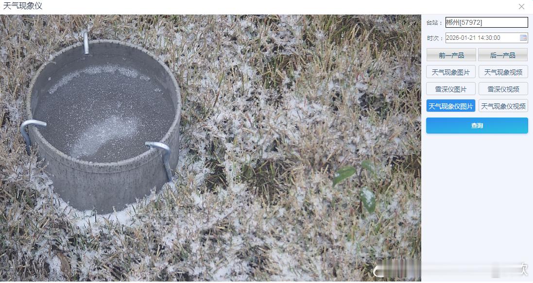 【雨雪】今天白天,山东半岛出现冷流降雪,在淮河以南多地,也出现了雨雪,总体强度不是很强。从今天下午观测看,在贵州等地有电线结冰。图4-6为湖南部分站点的观测场实拍,长沙应该是出现了冰粒(雪籽),郴州应该是冰粒和冻雨皆有,安仁应该是冻雨,草上有明显的结冰情况。今天中央气象台继续发布冰冻预警:预计,今天下午到明天中午,贵州中南部、湖南南部、广西北部、广东西北部、云南东北部、江西南部等地的部分地区有冻雨或冰粒,上述大部地区冻雨量1~2毫米,其中贵州东南部、湖南西南部、广西东北部部分地区3~5毫米,局地可达6毫米以上。