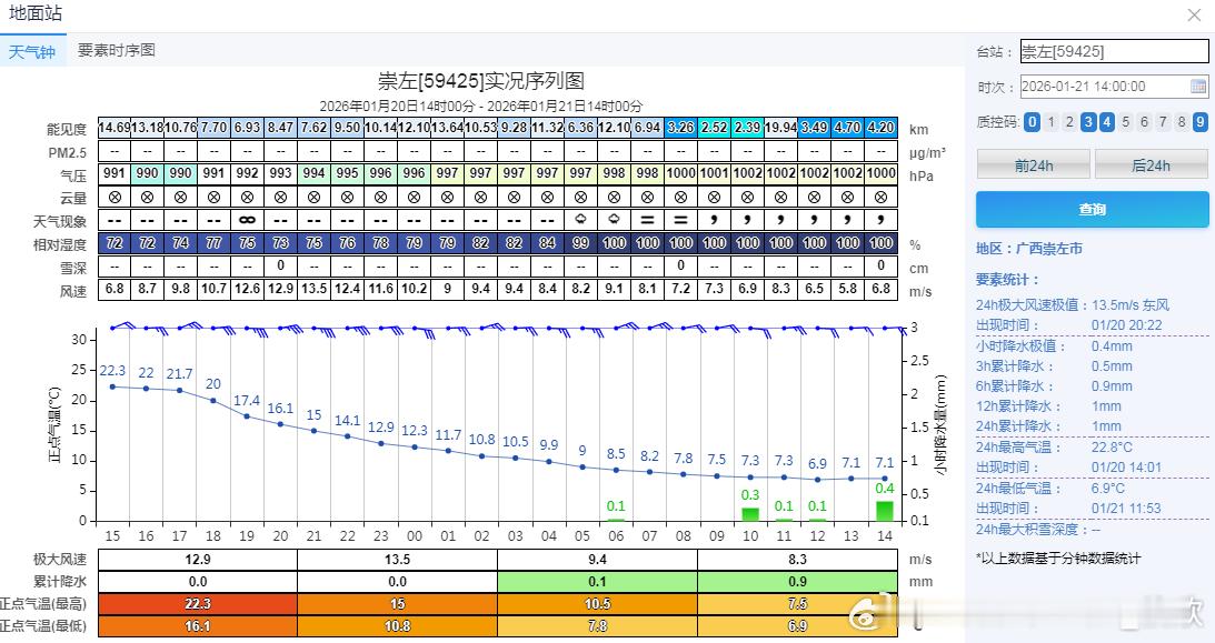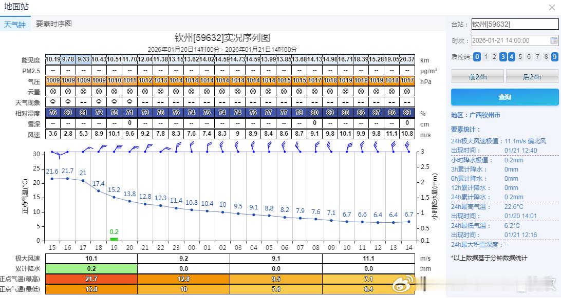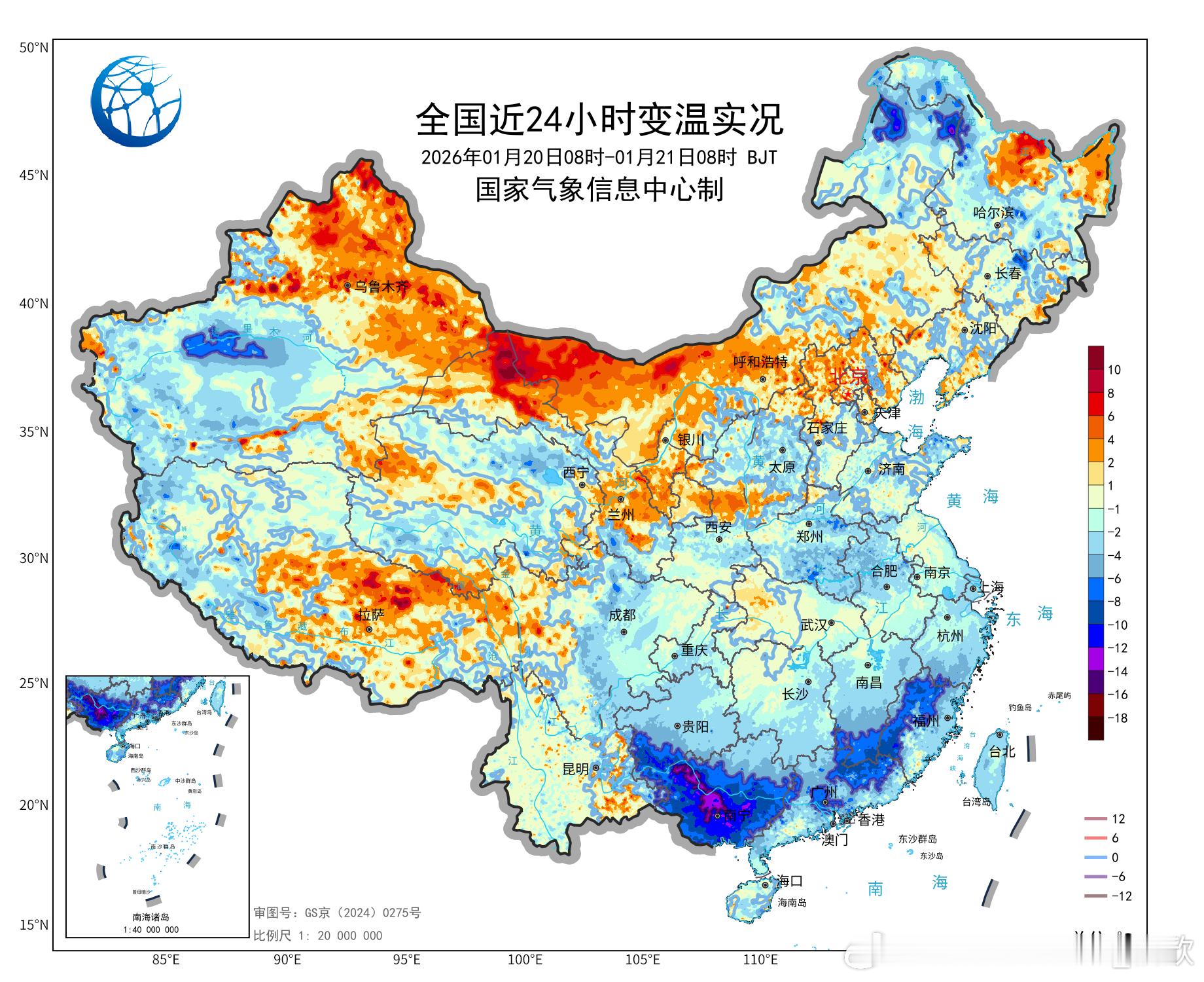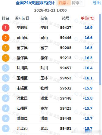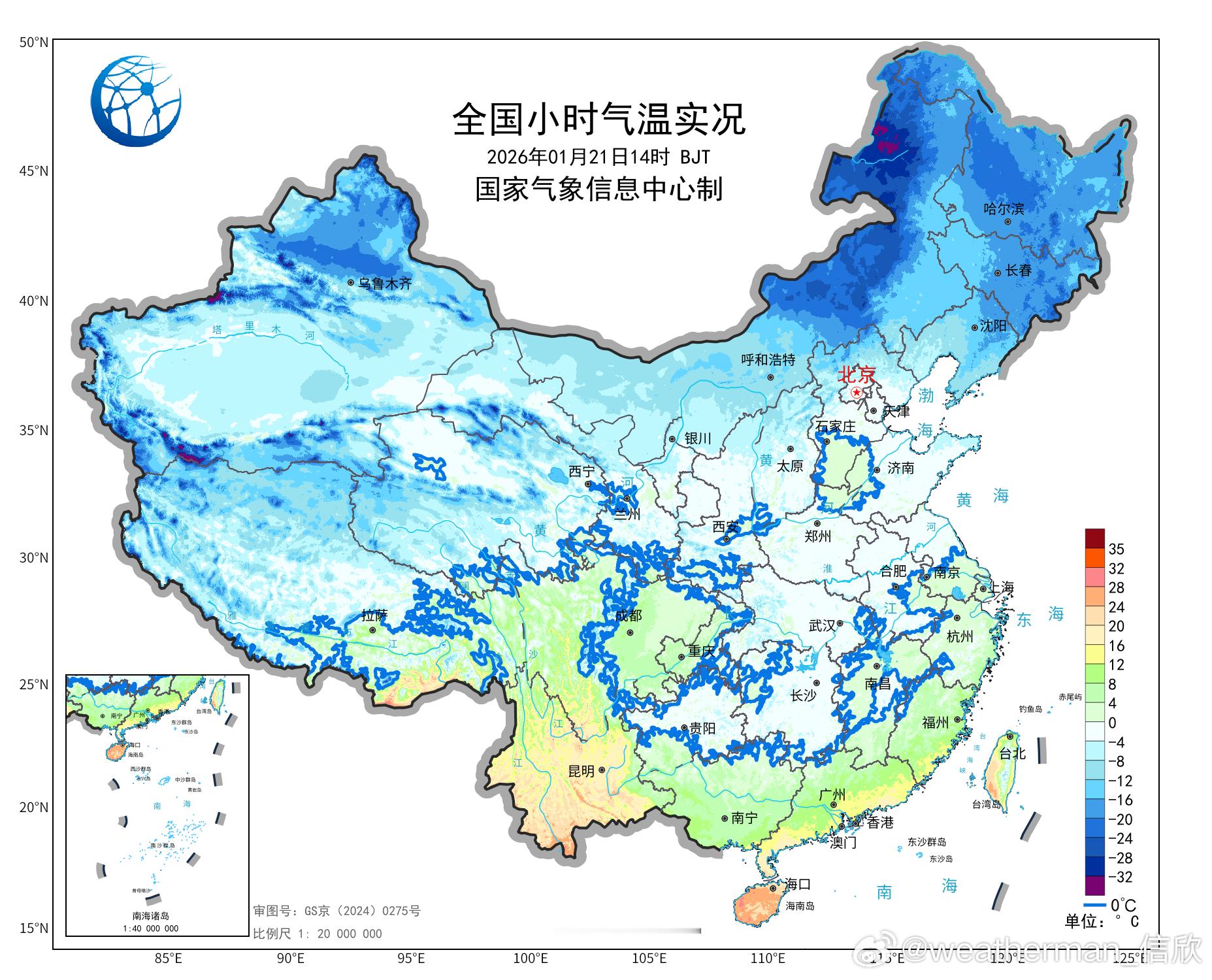 【降温】今天白天,广西南部和云南东南部因为寒潮影响,出现10-15℃降温,部分站点降温超15℃:广西宁明降16.9℃、灵山降16.6℃、云南富宁将16.5℃、广西德保降16.5℃、陆川降16.5℃。地级市中,玉林降16.1℃、钦州降15.9℃、崇左降15.7℃。这些站点,昨天下午大多还在20℃以上,今天下午降到个位数,而且从逐小时气温走势看,大多出现倒降或躺平走势。今天14时0℃南界在湖南南部-广西北部一带。不过今天北方开始回暖,在河北南部、河南北部、山东西部,气温重返0℃以上。