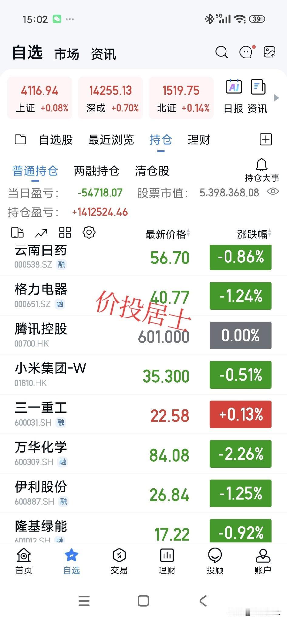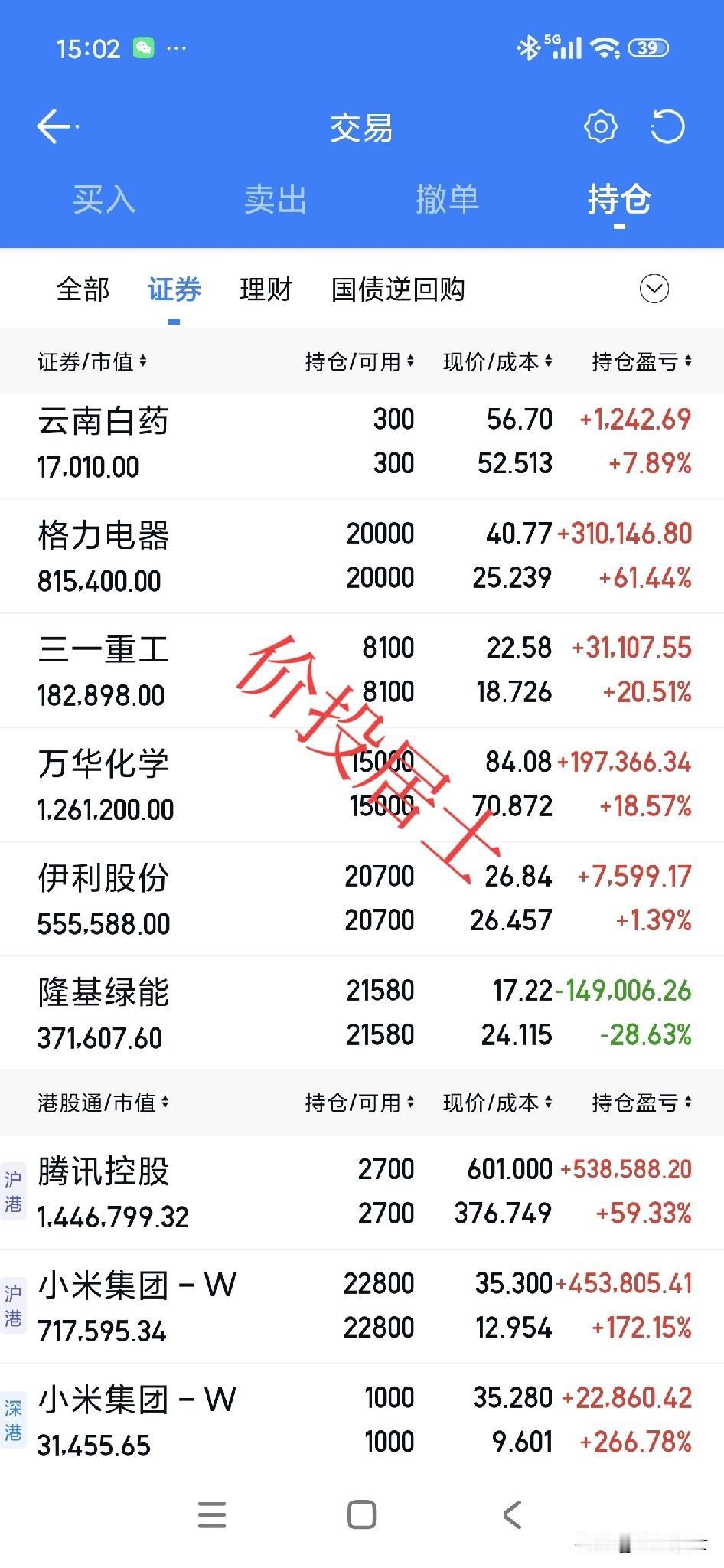 说说银行股,之前实盘账号持仓过邮储银行A股和港股,然后因为A股对港股的溢价率,清仓了邮储银行A股,全部换成了邮储银行港股。其实不止邮储,我多次表达了六大行都是属于核心资产的范围。 我清仓邮储是去换了万华,投资邮储也是从浮亏30%到浮赢30%,也没有卖在短期股价高点,后来买万华也没有买在短期低点。当然买低卖高我也不擅长! 我也不是说邮储银行与国有大行就不好,只是因为后来看懂了万华就去买万华去了。说句实话,就是不会买股票,平均买六大行的股票吃分红,拉长周期都能跑赢市场上的大部分散户。 至于说现在六大行的股票值不值得买,这个就需要自己看了,因为每人观察问题的角度不一样。我是感觉自己看万华比看邮储更清晰一些,才换手的[祈祷]