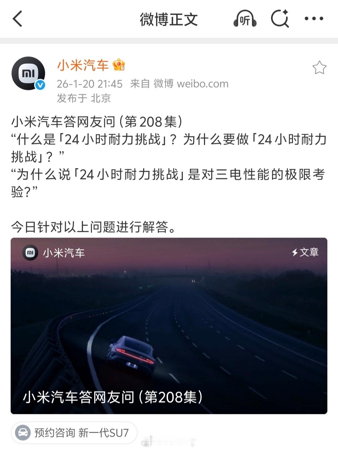 凡事贵在坚持,不知不觉小米汽车 的答网友问已经出到第208期了。小米汽车新能源汽车