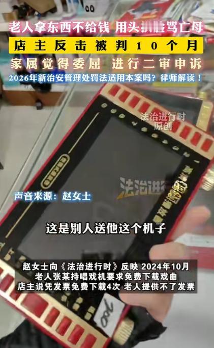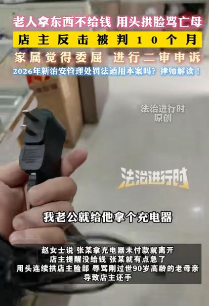 江苏徐州,老人拿着唱戏机进店,说充电器坏了。店主拿了一个新的给他,结果老人不付钱转身就走!店主赶紧提醒老人没付钱,可老人不但不付款,反而辱骂店主刚去世的老母亲,还对店主动手,店主忍无可忍还击了一下,结果被判刑10个月! 江苏徐州,老城区的街边小店就陆续开了门。老李和妻子赵女士经营的小家电维修店也不例外,货架上整齐摆放着各种型号的充电器、数据线,还有几台待修的旧家电。 刚过上午十点,一位头发花白的老人推门走进店里,手里攥着一台磨得发亮的唱戏机,机身外壳已经有些开裂,看得出来用了不少年头。 “老板,帮看看这机子,充电器坏了,充不上电了,顺便给我下载点戏曲”老李放下手里的活计,接过唱戏机仔细检查了一番,接口处确实有磨损痕迹,大概率是充电器老化导致的接触不良。 “大爷,这充电器得换个新的,通用款就行,35 块钱一个。” 老李一边说,一边从柜台下层拿出一个崭新的黑色充电器,递到老人面前。 老人接过充电器往唱戏机上一插,按下开关,咿咿呀呀的戏曲声立马传了出来。“行,能用。” 他随口说了句,拔下充电器揣进棉袄口袋,转身就往门外走,连掏钱的动作都没做。 老李愣了一下,以为老人年纪大记性不好,忘了结账流程,赶紧快步走到门口,语气客气地提醒:“大爷,您等一下,充电器还没付钱呢。” 没曾想,话音刚落老人就猛地转过身,指着老李的鼻子破口大骂:“什么钱?我拿个充电器还要给钱?你这黑心老板想讹我是吧!”  老李连忙解释:“大爷,这充电器是新的,小店小本生意,都是要花钱进货的,不能白拿啊。”“白拿怎么了?我这么大年纪了,拿你个破充电器怎么了?” 老人的声音越来越大,随后竟然对老李刚去世不久的母亲进行辱骂,那些不堪入耳的脏话像刀子一样扎进老李心里。 母亲去世还不到三个月,老李心里本来就还沉浸在悲痛中,平日里连提都不忍多提,此刻被老人当众用这样恶毒的语言辱骂,气血一下子涌上头顶。 “你怎么骂人呢?不许骂我妈!” 可老人非但没有收敛,反而更加嚣张,猛地往前冲了两步,用自己的额头狠狠撞向老李的脸。 突如其来的撞击让老李猝不及防,鼻子和脸颊传来一阵钝痛,他踉跄着后退了两步才站稳,脸颊瞬间泛起红印。 围观的人群发出一阵惊呼,有人忍不住劝道:“老人家别动手啊,有话好好说。” 但老人像是没听见一样,站稳后又要往前冲,嘴里还在不停地辱骂着。 被辱骂亡母的羞辱和脸部被撞击的疼痛交织在一起,老李再也忍不住了,本能地抬起右手,朝着老人的肩膀推了一下,想把他挡开,避免再被攻击。 这一下力度并不大,可老人像是失去了支撑一样,双腿一软就倒在了地上,双手捂住鼻子,大声喊着:“打人了!老板打人了!快来人啊!” 没过十分钟,民警就到了现场,询问了双方和几位目击者,然后把两人带回了派出所。 当天下午,老人被家人送到医院检查,诊断结果是鼻骨骨折,后来经司法鉴定,构成了轻伤二级,按照法律规定,轻伤二级已经达到故意伤害罪的立案标准。 让老李和家人始料未及的是,半个多月后,他收到了公安机关的刑事拘留通知书,理由是涉嫌故意伤害罪。 赵女士得知消息后,整个人都懵了,反复向民警解释:“是老人先骂人的,还先动手用头撞我老公,他只是推了一下自卫,怎么就成故意伤害了?” 可案件并没有因为家属的辩解而停止推进,经过检察院审查起诉后,最终被移送法院审理。 庭审过程中,老李的辩护律师提出,老李的行为属于正当防卫,是在遭受老人公然侮辱和人身攻击后,为了制止不法侵害才做出的反击,且反击力度轻微,不应认定为犯罪。 但法院审理后认为,老人的侵害行为主要是辱骂和用头撞击,属于强度相对有限的徒手暴力,而老李的推挡行为造成了老人轻伤二级的结果,超出了必要的防卫限度,不符合正当防卫的构成要件,最终以故意伤害罪判处老李有期徒刑 10 个月。 赵女士觉得自己丈夫就是正当防卫,不应该坐牢,于是带着判决书,一次次奔波于律师事务所和法院之间,在律师的帮助下,赵女士正式提起了二审申诉。 申诉书中明确指出,一审判决认定事实有误,忽略了老人先实施不法侵害的前提,且对正当防卫的限度认定过于严苛,没有充分考虑老李当时面临的特殊情境和心理状态。 这起事件被传到网上之后,引起了网友们的激烈探讨,有人觉得老李太冤,面对这样的辱骂和攻击,换谁都难以忍受。 也有人说,不管怎么样,造成他人轻伤就该承担责任,法律面前人人平等。 目前此案仍在审理中,法律面前人人平等,希望案件早日得到结果。 对于这件事,您有什么想说的吗?欢迎评论区留言讨论。 信源:法治进行时2026-01-15——《老人拿东西不给钱 用头拱脸骂亡母!店3反击被判10个月……》