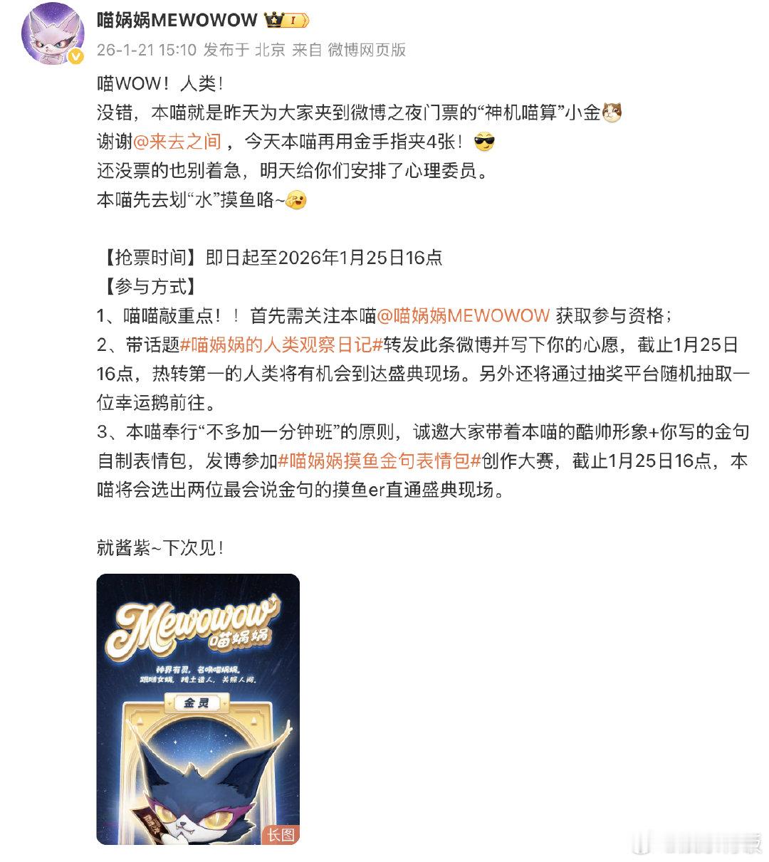 喵娲娲摸鱼金句表情包 每天都是三好员工:好饿好累好想睡😴 快用小金形象做表情包,赢盛典门票!