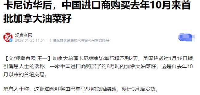 中国加拿大达成合作,澳大利亚哭晕在厕所! 要说最近国际农产品贸易圈里最让人唏嘘的事儿,那肯定得是澳大利亚油菜籽产业的遭遇了,说一句 “澳大利亚天塌了” 真不算夸张。 就在上周,加拿大总理卡尼刚结束访华行程没两天,咱们国内一家进口商就直接砸出了 6 万吨的加拿大油菜籽订单。 这消息一出来,加拿大农民那边直接欢天喜地,觉得好日子总算要回来了,可反观澳大利亚这边,那真是愁云惨淡。 不少从事油菜籽产业的民众都快哭了,这订单对他们来说,简直就是到手的鸭子飞了,能不失望吗? 可能有人不知道这里面的门道,说白了,这 6 万吨订单,本来大概率是有澳大利亚一份的,毕竟他们盼着对华出口油菜籽的订单,已经盼了整整五年了。 回溯到 2020 年的时候,咱们中国为了防控黑胫病传播,保障国内农业生产安全,出台了严格的检疫规定,而澳大利亚的油菜籽因为没能达到咱们的检疫标准。 就被暂停了对华出口,这一停就是五年。这五年里,澳大利亚的油菜籽产业可以说是过得相当憋屈。 本来中国是全球最大的油菜籽进口市场,丢了这个大买家,他们的油菜籽只能到处找其他销路。 可要么价格上不去,要么销量跟不上,不少农场主都扛着巨大的压力,就盼着哪天能重新获得对华出口的资格,能接到来自中国的大订单。 为了重新打开中国市场,澳大利亚方面这些年也确实下了不少功夫,尤其是阿尔巴尼斯政府上台后,一直积极推动修复中澳关系。 还专门就油菜籽出口的检疫问题跟咱们沟通,甚至让出口商升级设备、建立监测系统,就是为了确保油菜籽能达标。 之前也有过小批量的试运,本来大家都觉得,随着中澳关系的缓和,大规模的订单应该很快就会来,澳大利亚的油菜籽产业终于要熬出头了。 可谁也没想到,加拿大在这个节骨眼上突然发力,卡尼总理亲自带着萨斯喀彻温省省长访华,专门为油菜籽贸易 “松绑”,双方还明确了要调整反倾销措施和相关关税政策,这诚意一摆出来,订单自然就跟着来了。 这事儿对澳大利亚来说,打击真的太大了。本来他们都已经等了五年,眼看着希望就在眼前,结果被加拿大截了胡,换谁都接受不了。 要知道,油菜籽产业对澳大利亚不少地区来说都是支柱产业,关系到成千上万个家庭的生计,这五年里,多少农场主因为没了中国市场而缩减种植面积,多少相关企业因为订单不足而裁员减产。 现在好不容易看到点曙光,却被加拿大抢走了订单,这心里的落差可想而知。而且更关键的是,中国市场本来就不是非此即彼的。 咱们选择从哪个国家进口农产品,核心还是看品质过不过关、合作诚意够不够,还有就是贸易条件合不合适。之前澳大利亚油菜籽因为检疫问题被暂停出口,这是硬伤。 而加拿大这次不仅解决了之前的检疫争议,还主动上门谈合作,拿出了务实的态度,订单落到他们手里也算是情理之中。 说白了,这事儿也给澳大利亚提了个醒,国与国之间的贸易合作,靠的是实打实的品质和诚意,不是光等就能等来的。 之前莫里森政府跟着美国搞对抗,把中澳关系搞僵了,连累了不少产业,现在虽然阿尔巴尼斯政府在努力修复,但有些机会一旦错过,就很难再找回来了。 现在加拿大已经抢先一步拿到了订单,接下来肯定会趁势扩大对华出口,澳大利亚要是想重新夺回中国市场,光着急没用。 还得在提升产品品质、满足中国检疫要求上多下功夫,拿出比加拿大更有诚意的合作态度才行。 不然的话,别说这 6 万吨订单了,后续更多的市场份额都可能被别人抢走,到时候澳大利亚的油菜籽产业可就真的难了。 说到底,这都是澳大利亚自己之前的错误政策埋下的隐患,现在尝到苦果,也只能怪自己当初不够明智,没能好好把握和中国合作的机会。