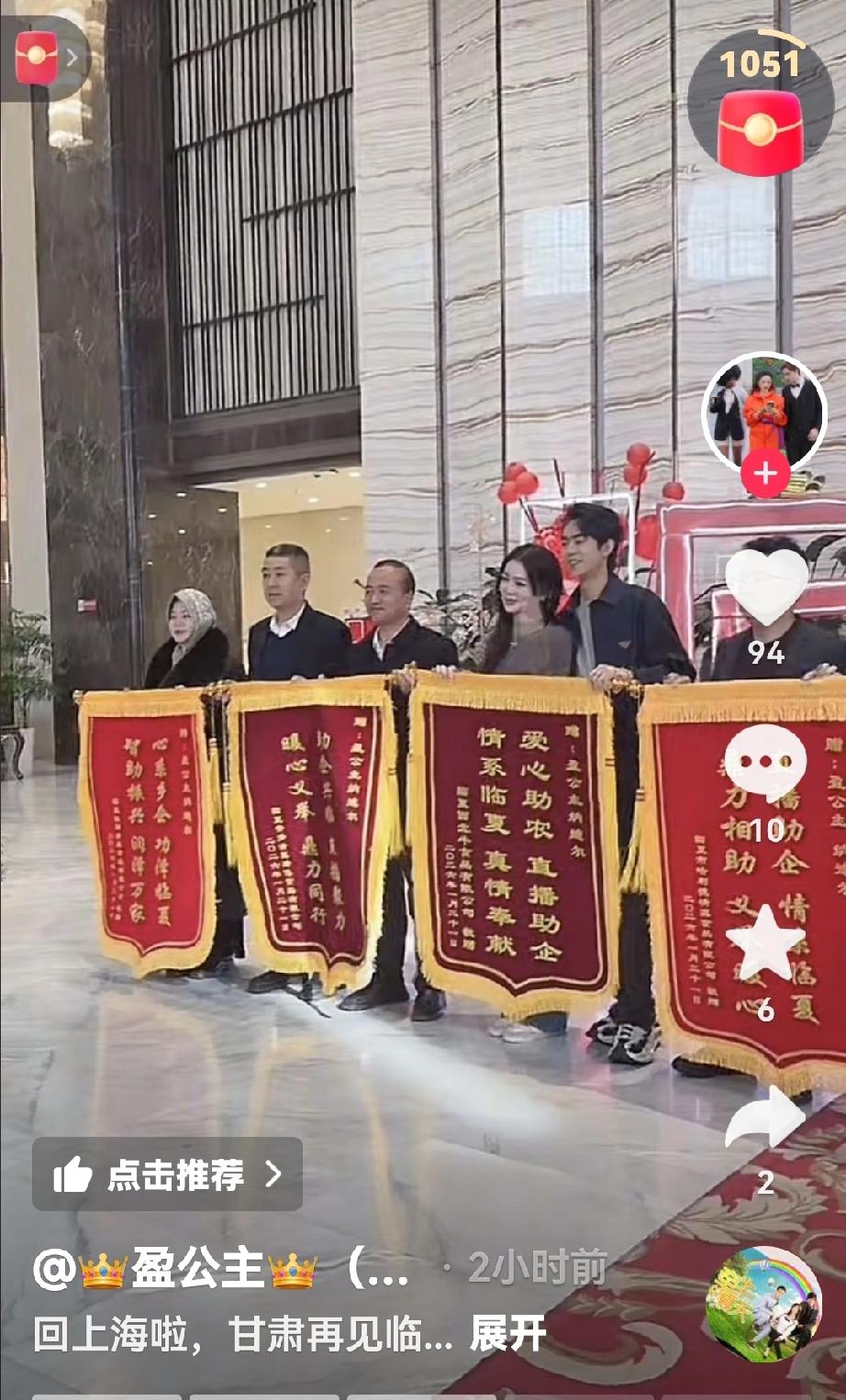 盈公主 一次临夏之行,带火了甘肃,这一面面的锦旗,就是最好的证明。甘肃人民感谢盈公主和纳迪尔。盈公主的大爱,值得网红们学习[比心][比心][比心]