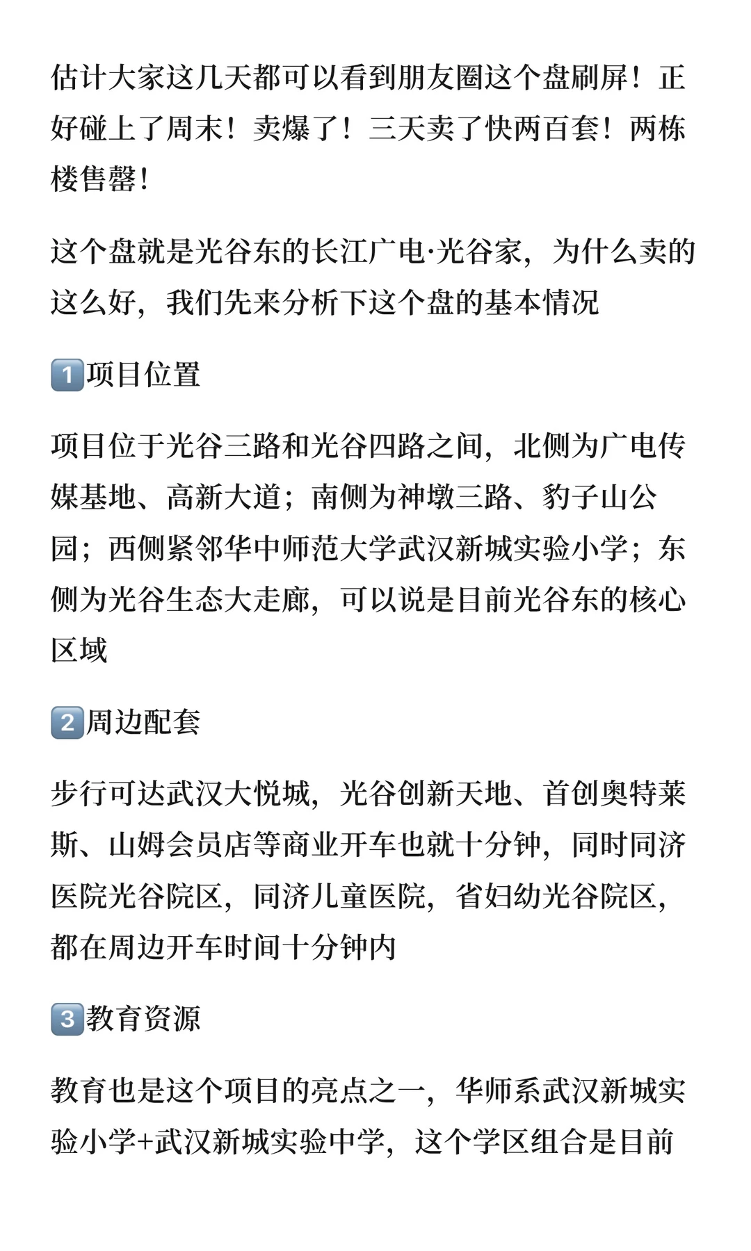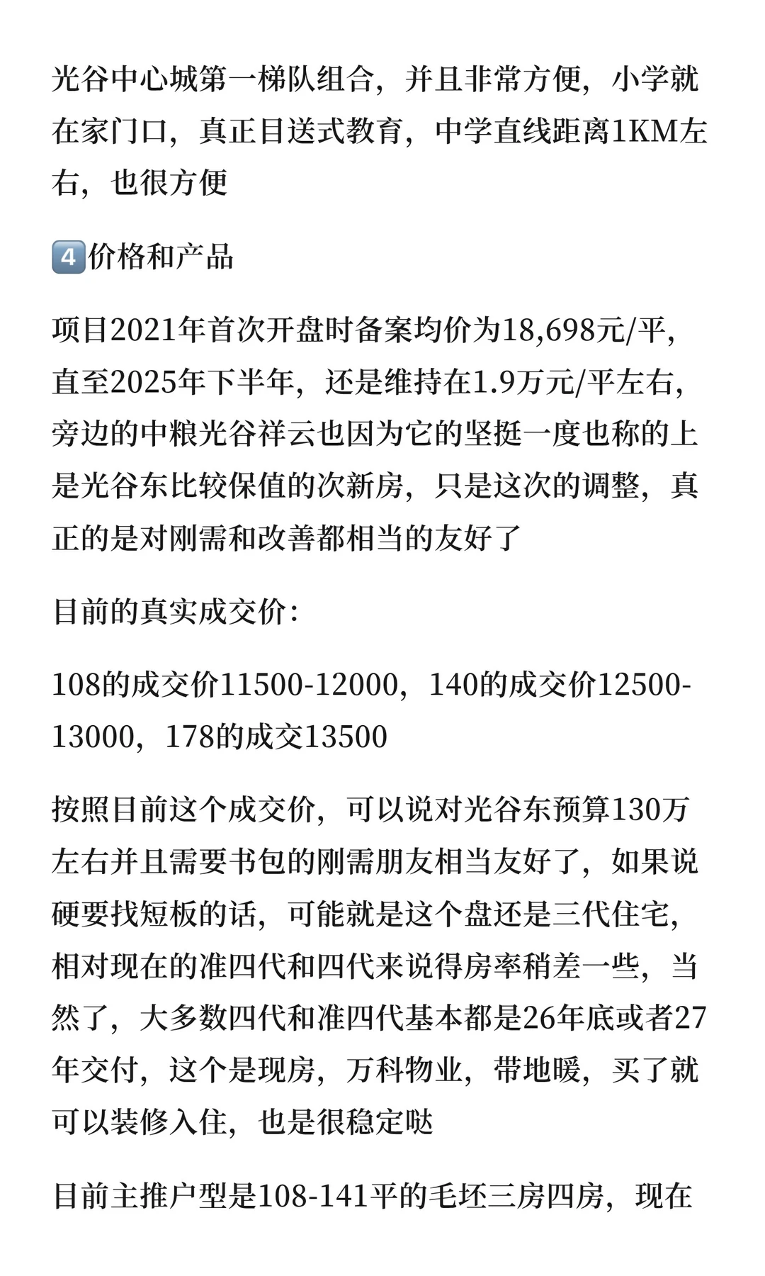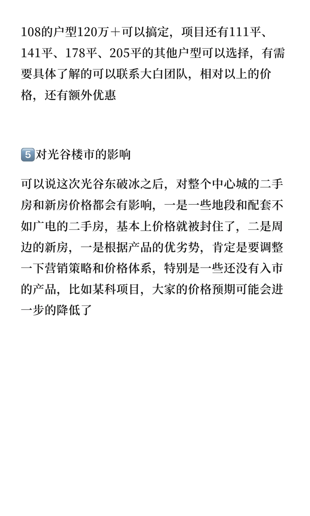从目前的楼市行情来看,广电这次破冰的性价比确实还不错,对于预算120万出头想要书包和现房的,那么广电确是给个比较好的选择,如果想要四代新产品的可以等一下万科璞拾光屿,可能相应的单价和门槛会相对高一些,另外还有离的不远的深业翠微谷,目前和光谷家价格差别不是很大,面积段是125-143平,也是纯毛坯,四代住宅,但是学校目前不确定,然后还有湖北科投万科璞拾光屿,即将首开,产品有100-120-133-143-169平三房四房产品,想往关山这边来的朋友也可以看看招商原颂,项目户型110.135.155,价格1.6+,属于关山板块了,所以相对来说价格贵点儿,以上楼盘想详细了解的都可以问我,欢迎加入👇👇👇👇👇