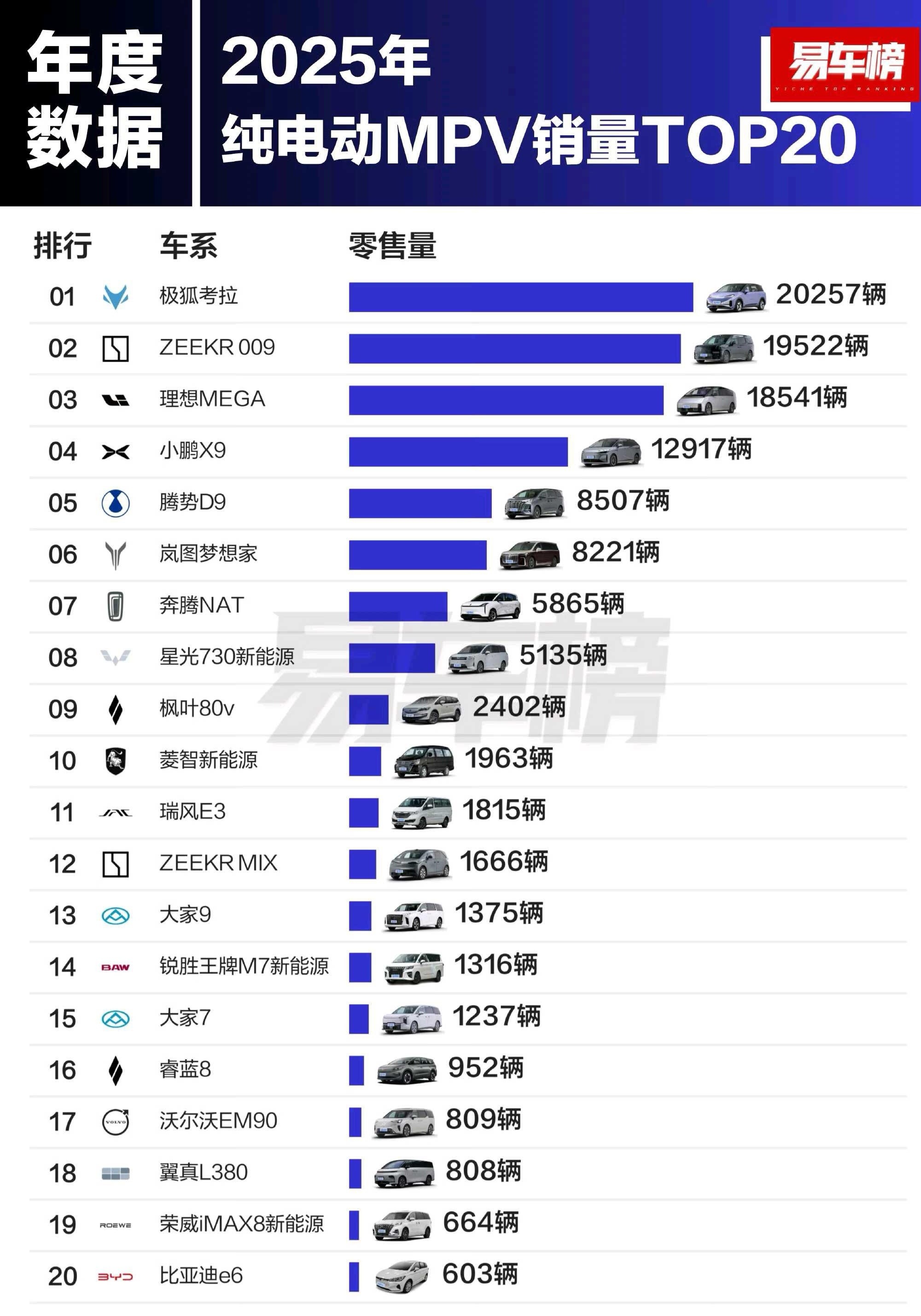 MPV这种车型的用户对续航有焦虑?纯电车型的销量很少,2025年卖的最多的是极狐考拉,也就2万出头。