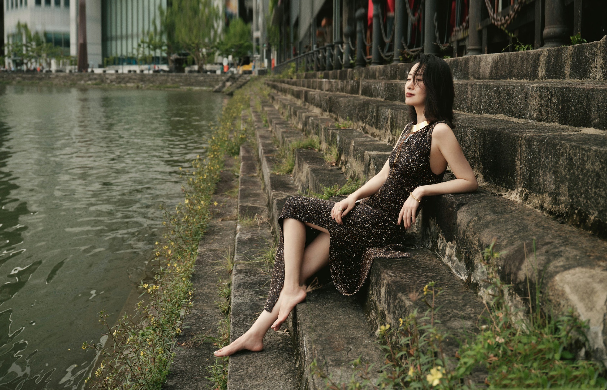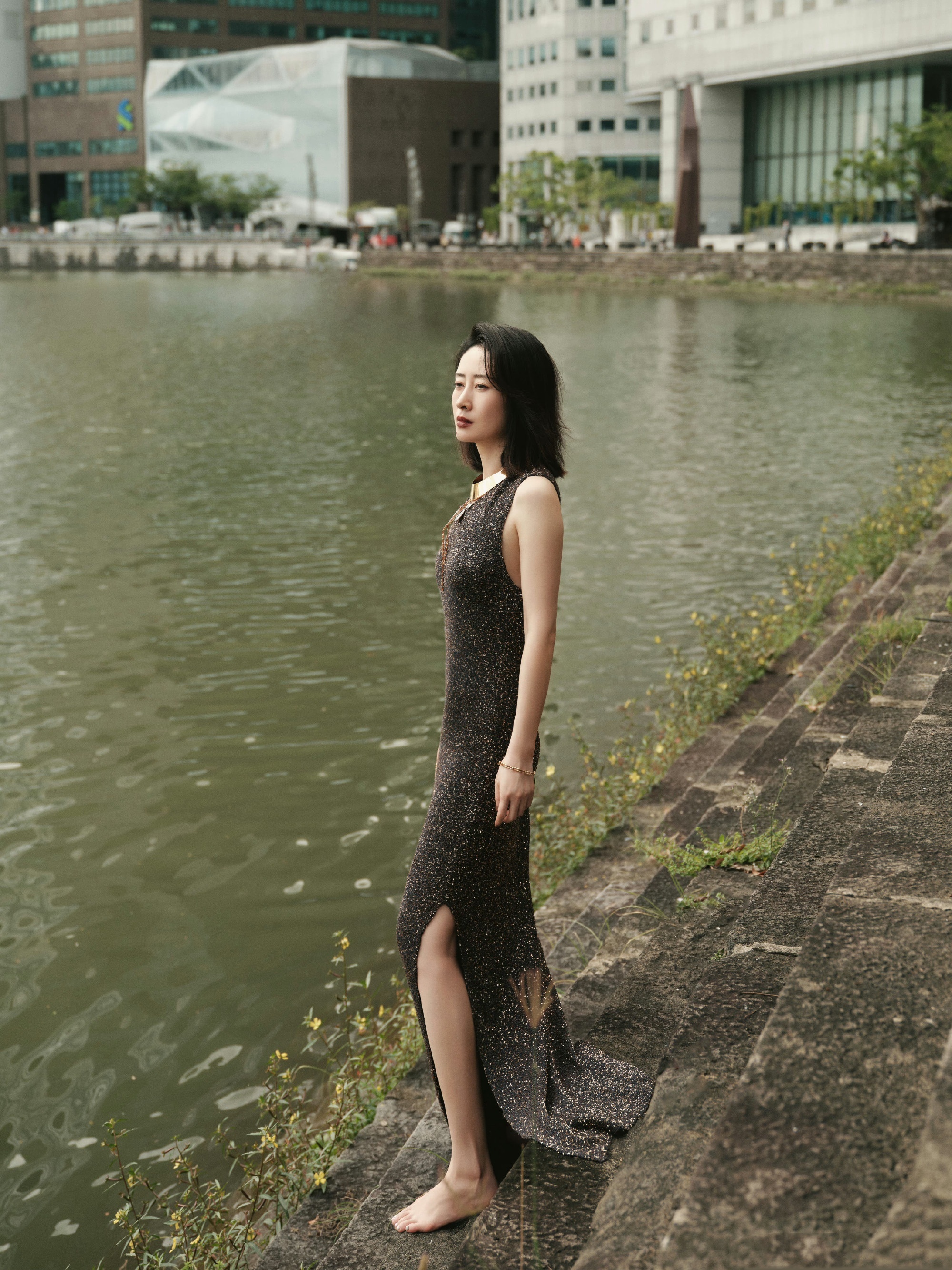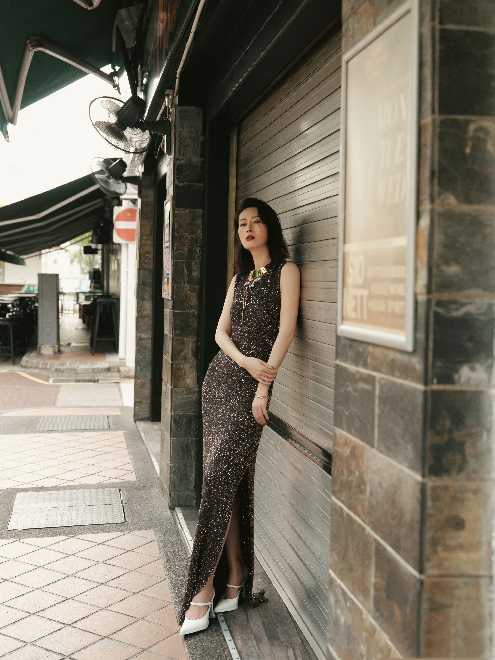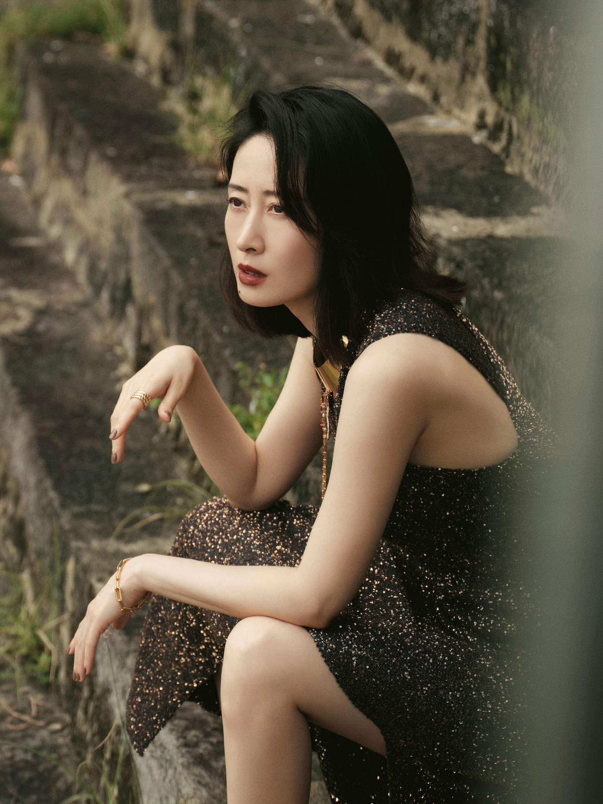 刘敏涛,一袭暗色亮片纱裙,成熟韵味满满。刘敏涛