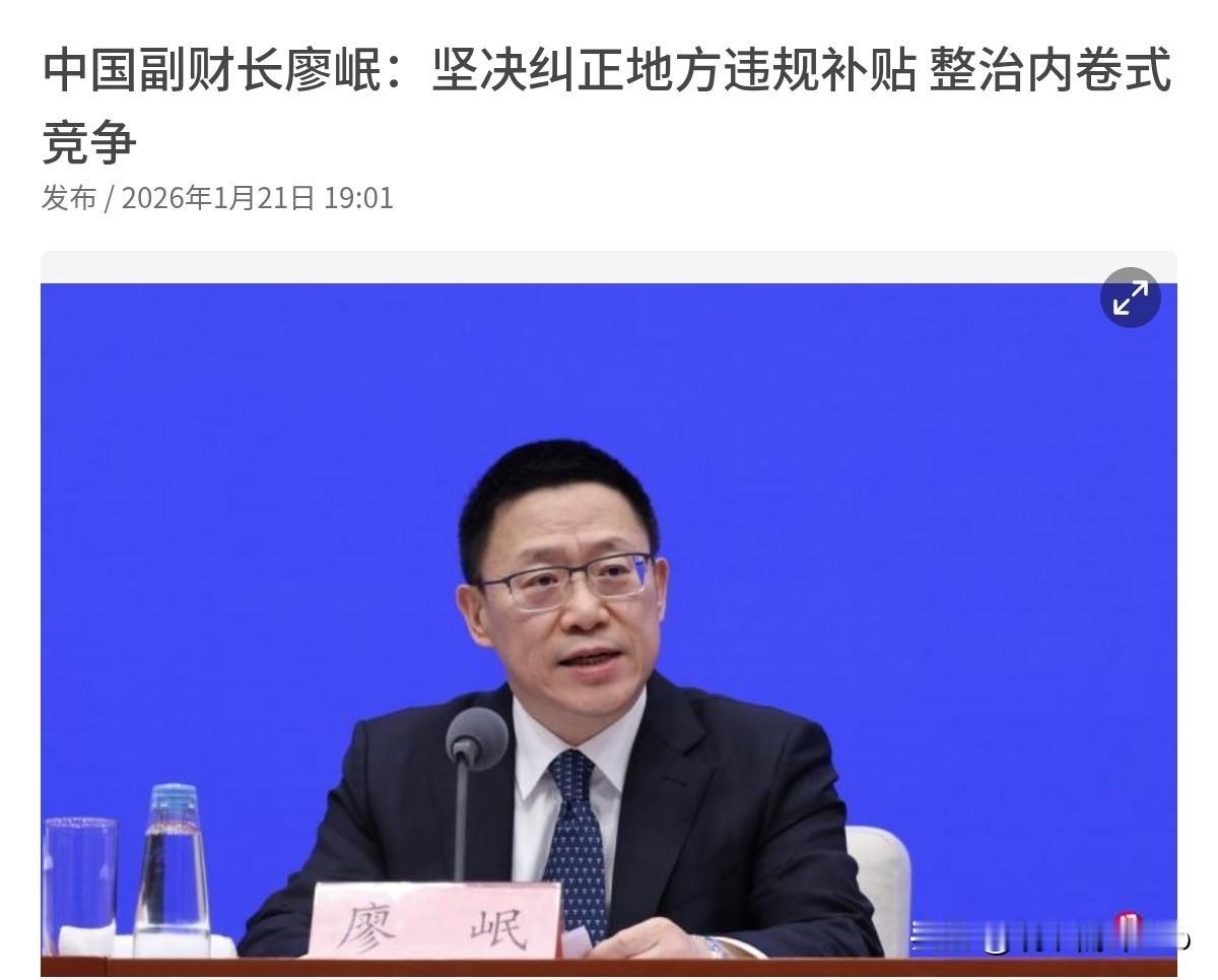 早就该出手了!1月20日,中国副财长廖岷:将坚决纠正地方违规补贴,整治内卷式竞争