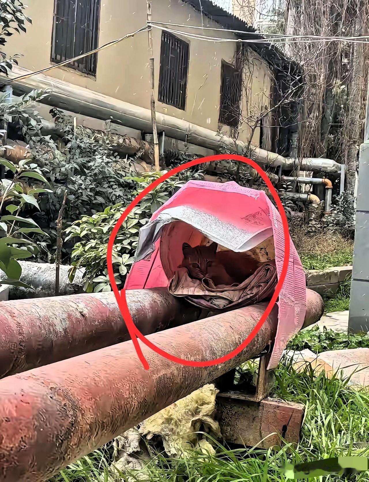 不知哪位有心人想出的招,真的太暖了!两根暖气管中间架个简易猫窝,一块防雨布遮得严严实实,一只流浪猫正蜷在里面睡得香甜。天寒地冻的日子里,暖气管的温度成了它的救命稻草,再也不用在寒风里缩成一团瑟瑟发抖。这个窝看着简陋,却藏着最实在的善意——不用多贵重的物资,不用多复杂的步骤,只是顺手搭个小空间,就能给小生命一个安稳的冬天。比起那些喊着爱心口号却不行动的人,这种默默的举手之劳才最动人。善良从来不是轰轰烈烈的作秀,而是看见弱者时,愿意弯下腰递去的一点温暖。你见过哪些不起眼却超暖心的救助瞬间?快来评论区分享吧!