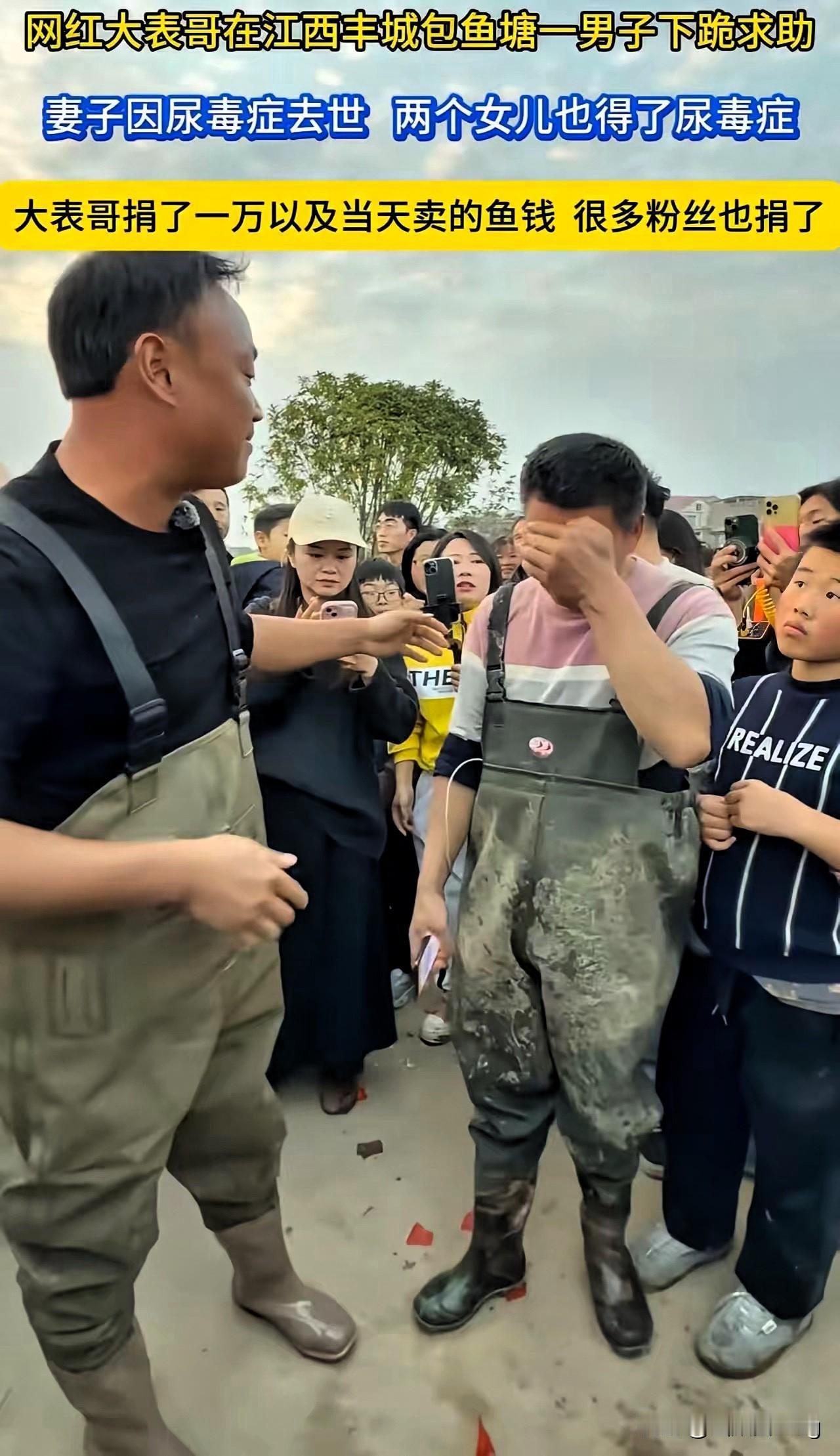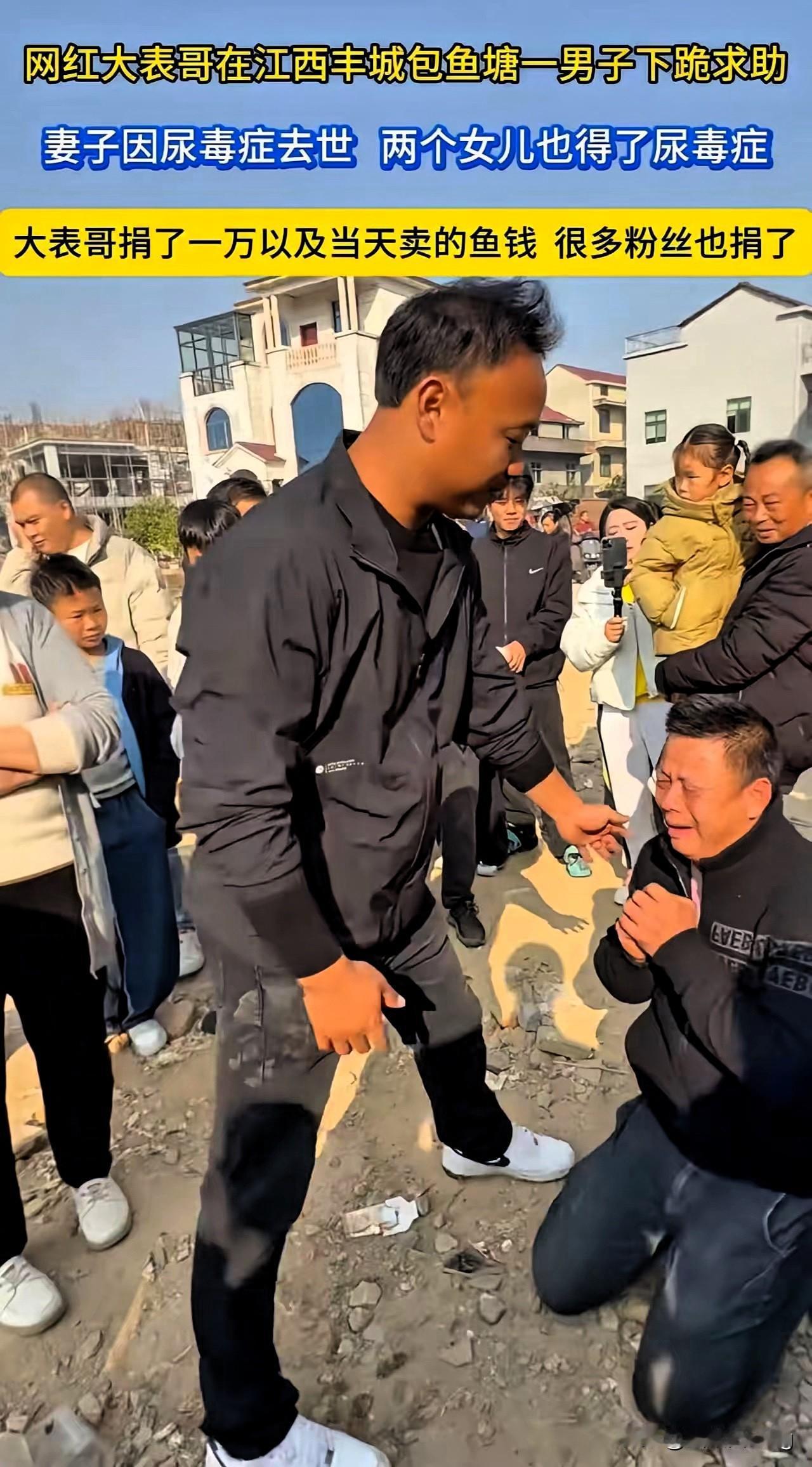 看哭了!这才是网红该有的模样,流量配得上善良才是真的顶!大表哥十万包塘本想做场直播,却因鱼塘塌陷亏了大本,可他转身就把这份亏,变成了一个绝望父亲的光。江西顾大哥的人生苦到极致,妻子因尿毒症不忍拖累家人离世,两个女儿又接连确诊尿毒症晚期,家中还有残疾老人要养,走投无路的他对着大表哥跪下的那一刻,戳中了所有人的泪点。但大表哥的做法太戳心,他没给施舍,而是让顾大哥一起拉网挣钱,把微薄的卖鱼钱全给他,还自掏腰包补了一万多,更用自己的流量为他发声。这世上最珍贵的善良从不是居高临下的给予,而是护住对方的体面,陪他一起扛。大表哥让我们看到,网红的流量不是用来收割的,而是用来传递温暖的,他亏了钱,却赚走了所有人的敬意。真正的正能量从不是喊口号,而是遇事时的一份心软,一份行动。你身边有没有这样用行动温暖他人的普通人?说说他们的故事,让善意一直传下去!