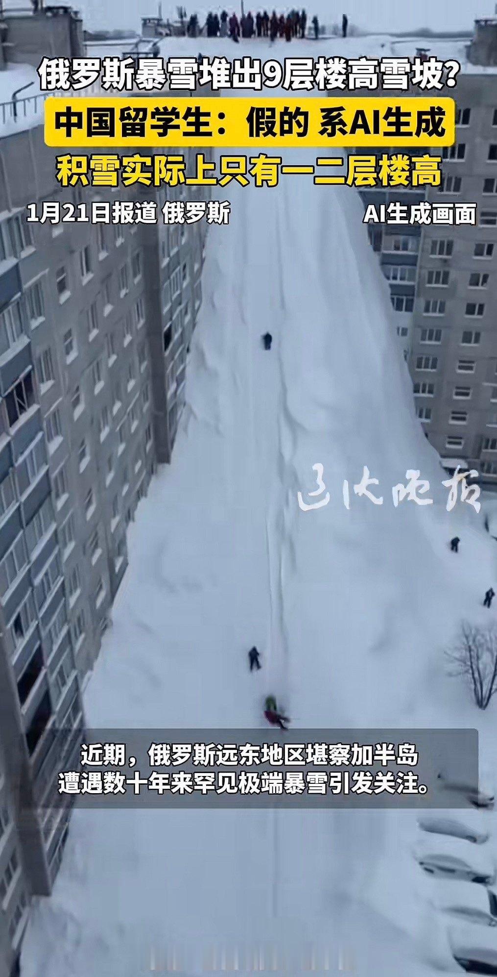 留学生揭穿9层楼积雪骗局 俄罗斯暴雪堆到九层楼的视频,我还在感叹战斗民族的冬天太硬核,结果居然是AI搞的!也太逼真了吧!现在看个视频都得自带“鉴假雷达”,以后网上的瓜都不敢随便信了