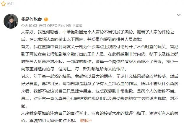 短剧顶流帅脸白长了?直播甩锅女主还装“挂件”,道歉都像走流程 短剧圈这瓜也太离谱了!中戏出身的帅哥何聪睿,新剧《四姊妹的八零年代》刚零点上线,直播里就口无遮拦。 明明是聊播出时间,非要扯“女频剧要赖先赖两位女主”,还说自己是“挂件男主”。 粉丝还洗白“被曲解”,这甩锅都快甩到观众脸上了!连夜发道歉说“开错玩笑”,早干嘛去了? 帅是真帅,但这迷惑操作,直接把人整懵。
