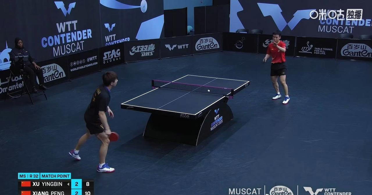 向鹏🇨🇳晋级! 这是向鹏首次在成人赛上击败徐瑛彬🇨🇳, 昨日午夜,2026WTT常规挑战赛马斯喀特站男单首轮比赛中, 向鹏🇨🇳3-2击败从资格赛上艰难晋级的队友徐瑛彬🇨🇳,顺利挺进男单16强,五局比分为:10-12,11-8,11-9,11-13,11-8。 也许因为这是内战,两人打得很含蓄,就像两个忧郁的诗人正在打球,一点儿声都没[允悲],也没有太多观众。 下一轮向鹏对阵安东·卡尔伯格🇸🇪,这硬仗要来了[奋斗]!