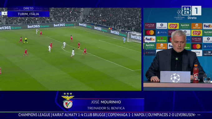 穆里尼奥发布会帽子戏法,本菲卡3:2逆转尤文图斯